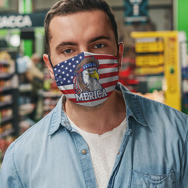 Eagle Mullet Merica America Flag Cloth Face Mask, White, Cloth Face Mask