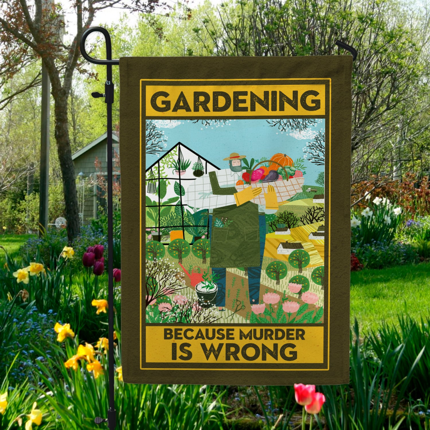 Let’s Shop Gardening Because Murder Is Wrong Decorative Garden Flag – Indoor Outdoor Flag – House Flag!