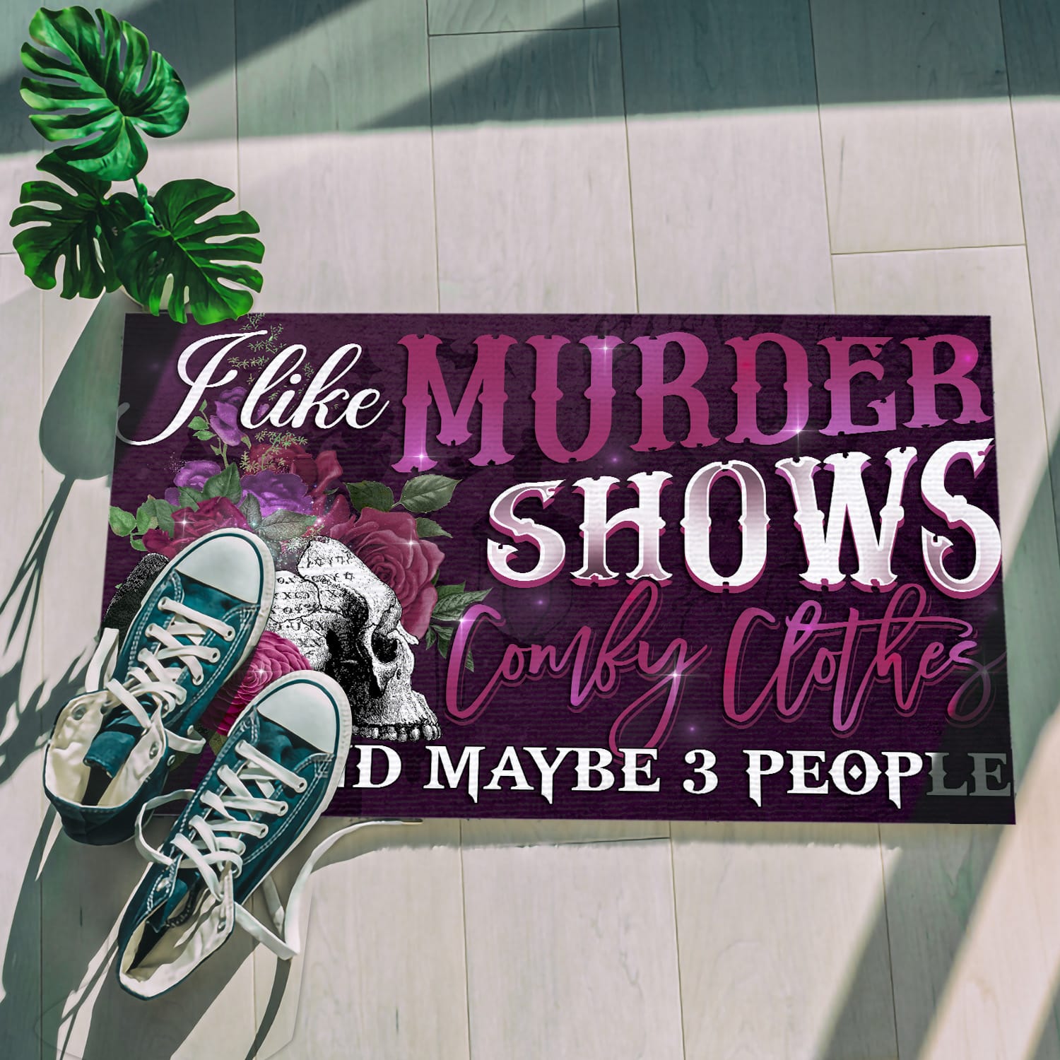 Let’s Shop I Like Murder Shows Comfy Clothes and Maybe Three People – Funny Entrance Indoor Outdoor Decorative Doormat!