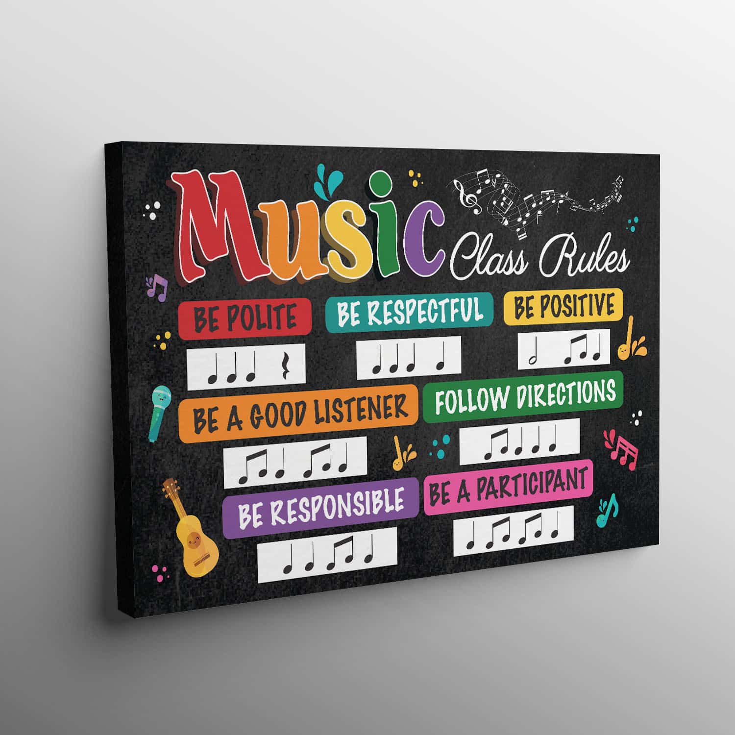 Let’s Shop Music Class Rules Be Polite Be Respectful Be Positive Gallery Wrapped Framed Canvas Prints – Unframed Poster!