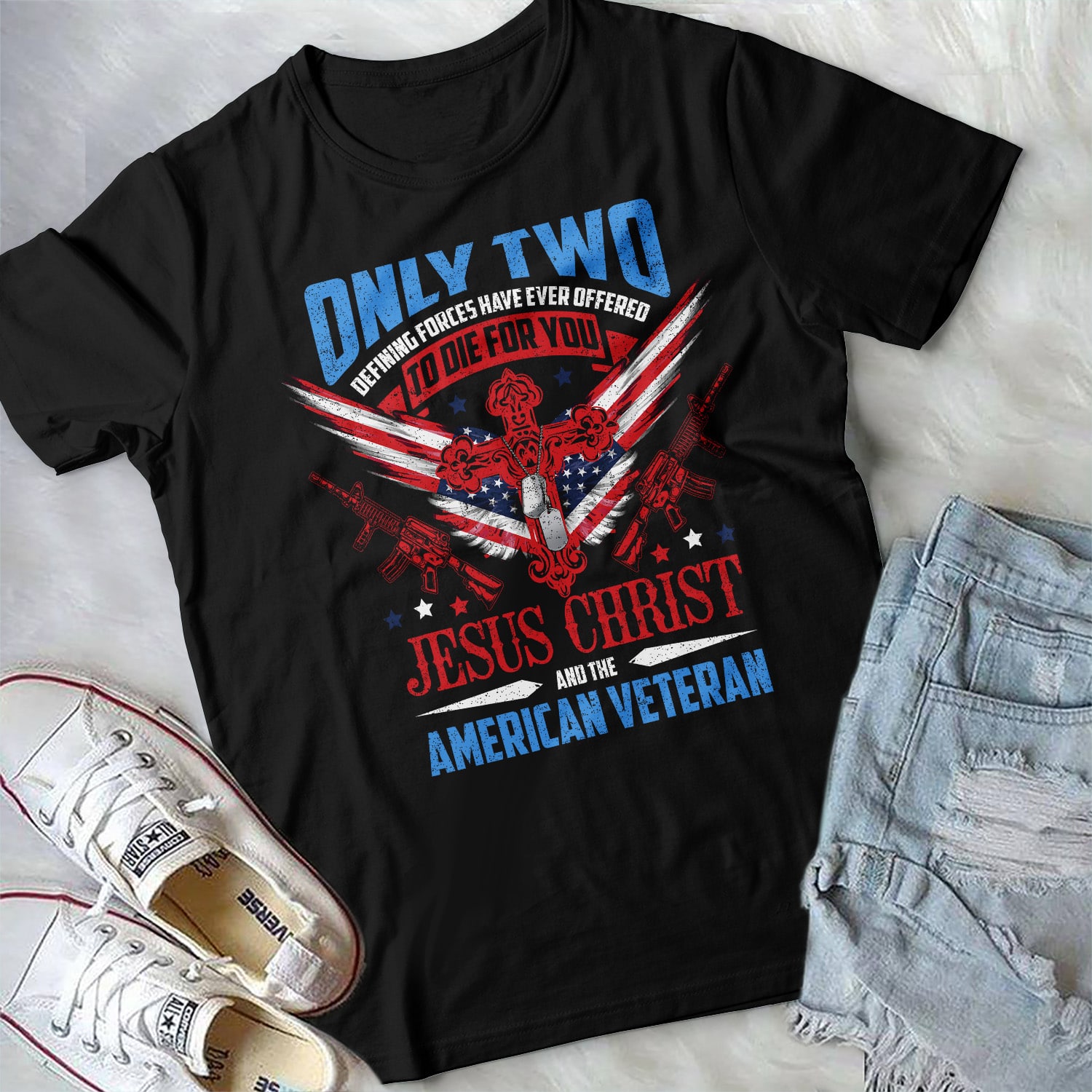 Only Two Defining Forces To Die For You Jesus Christ And American Veteran T-Shirt – Veteran Dad Shirt