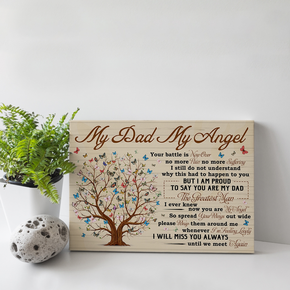 Shop My Dad My Angel Your Battle Is Now Over – Butterfly Tree Gallery Wrapped Framed Canvas Prints – Unframed Poster.