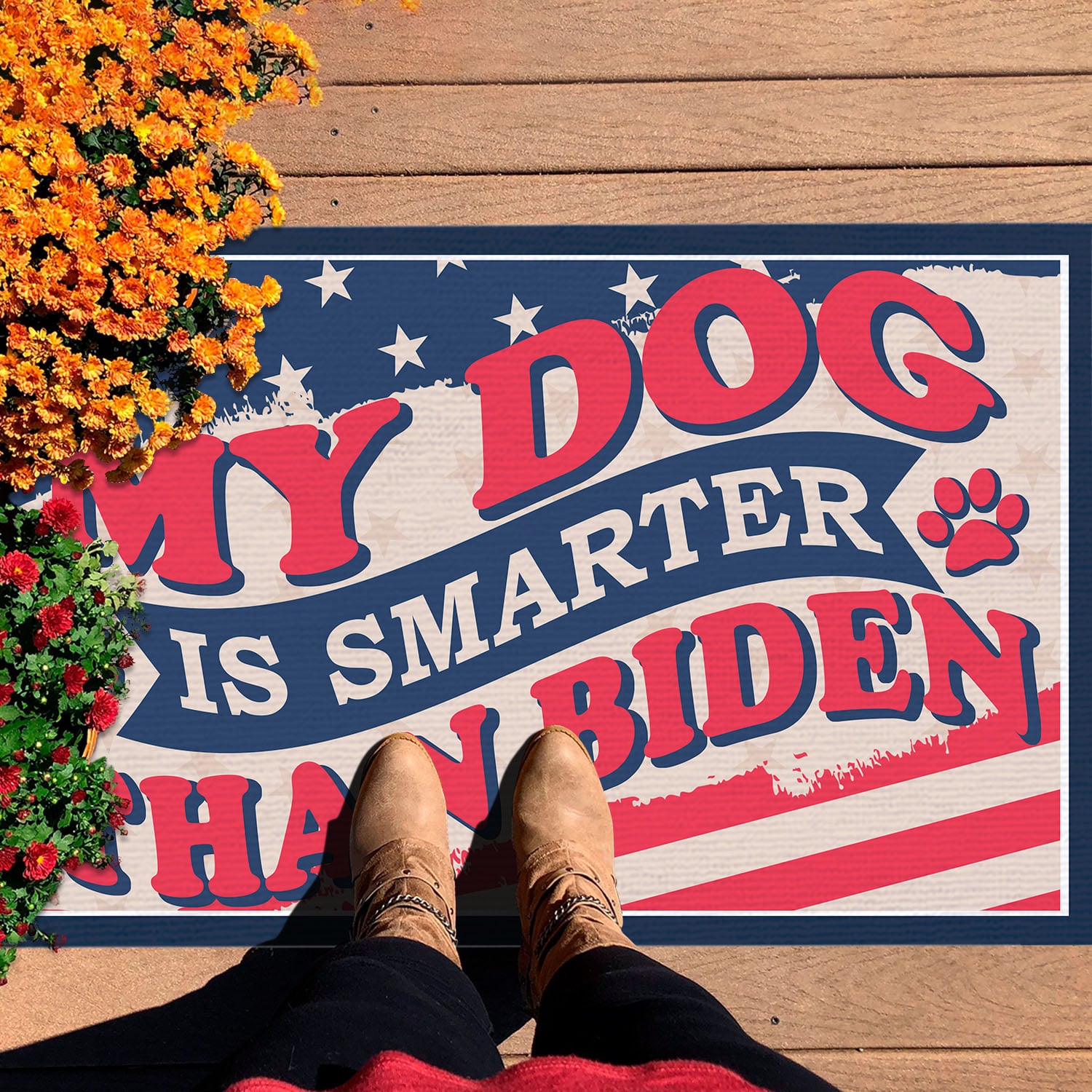 Let’s Shop My Dog Is Smarter Than Biden Funny House Doormat – Anti Biden Outdoor Indoor Doormat!