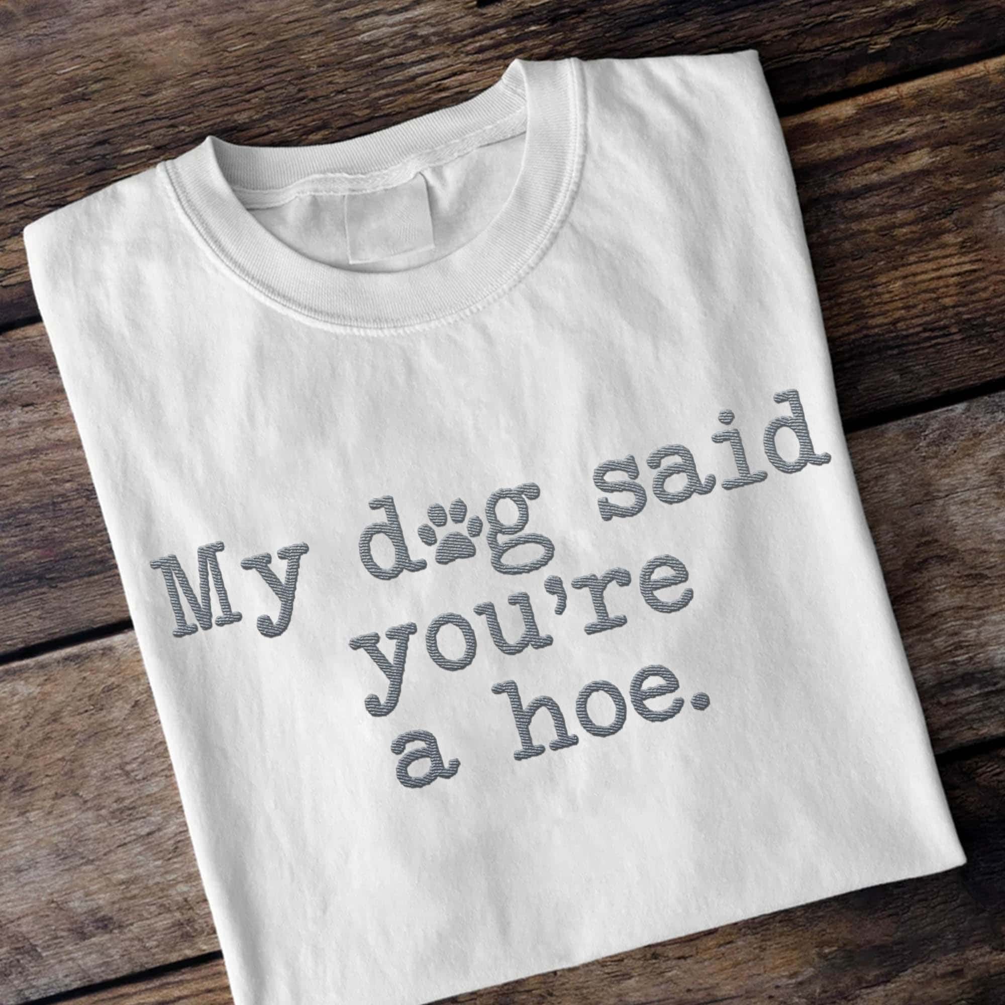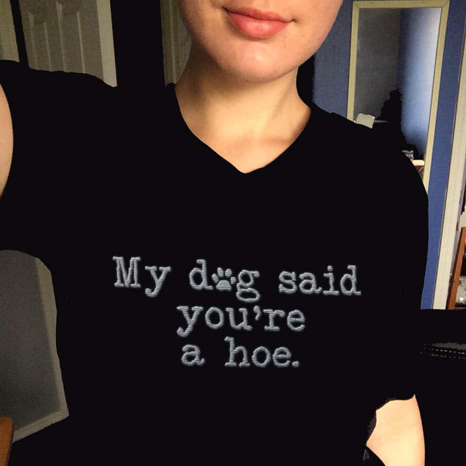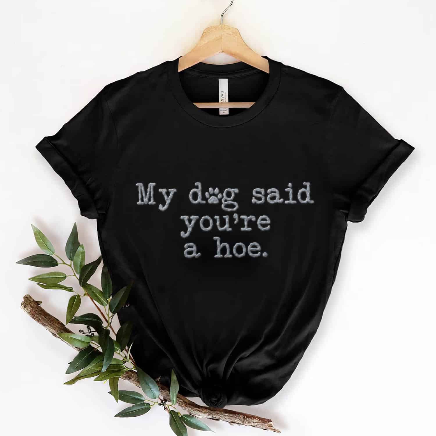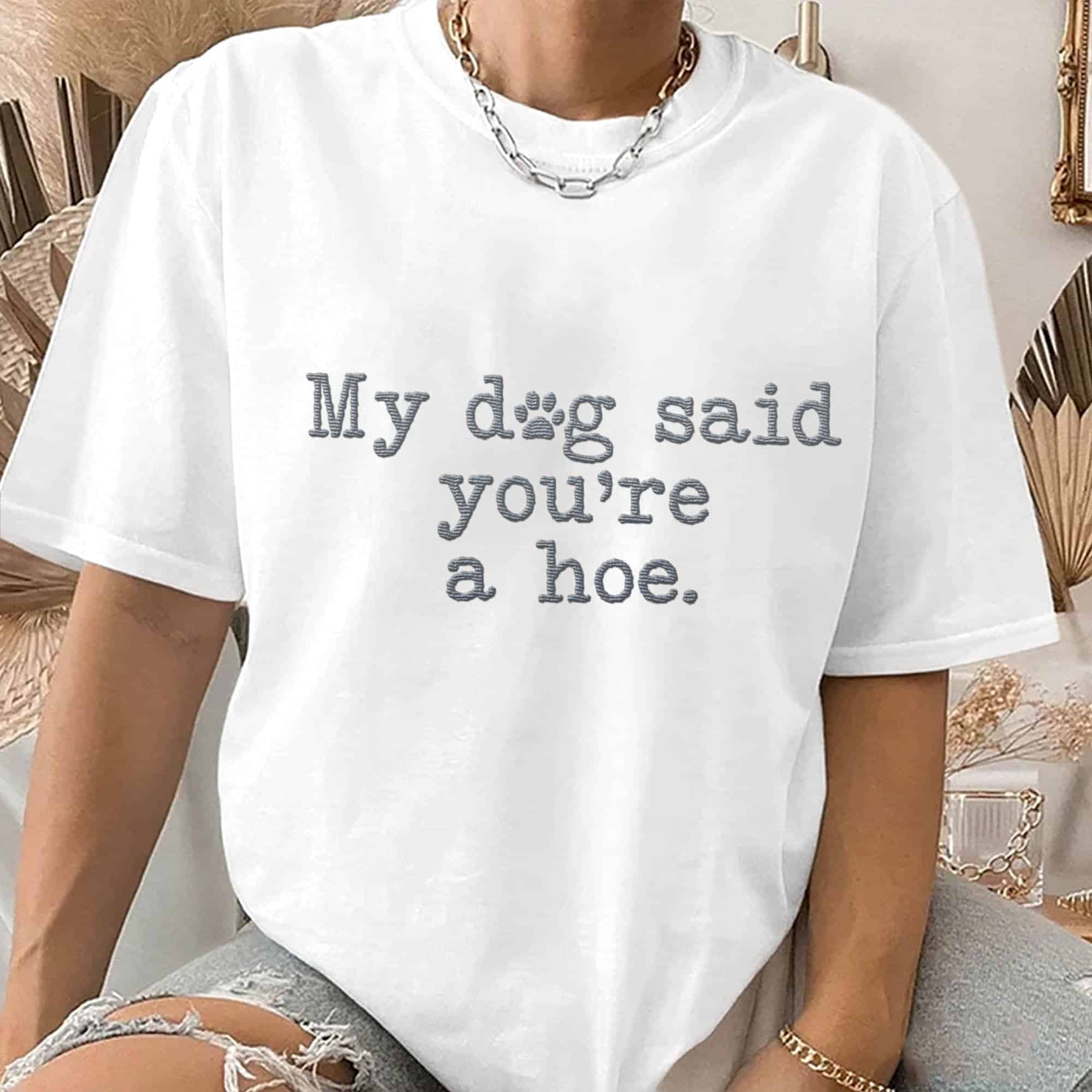 Are you spending too much time to find creative merchandise for you or suitable & special gifts for your mommy, your daddy, your son, your daughter, your children, your friends or someone you love? The struggle is over because we have various type of products such as My Dog Said You’re A Hoe Shirt, My Dog Said You’re A Hoe Embroidered Shirt, Embroidered Shirt, Dog Embroidered Shirt which will make perfect presents for your beloveds. In order to make your present stand out, we have created lots of unique and awesome customized photo gifts & personalized designs.