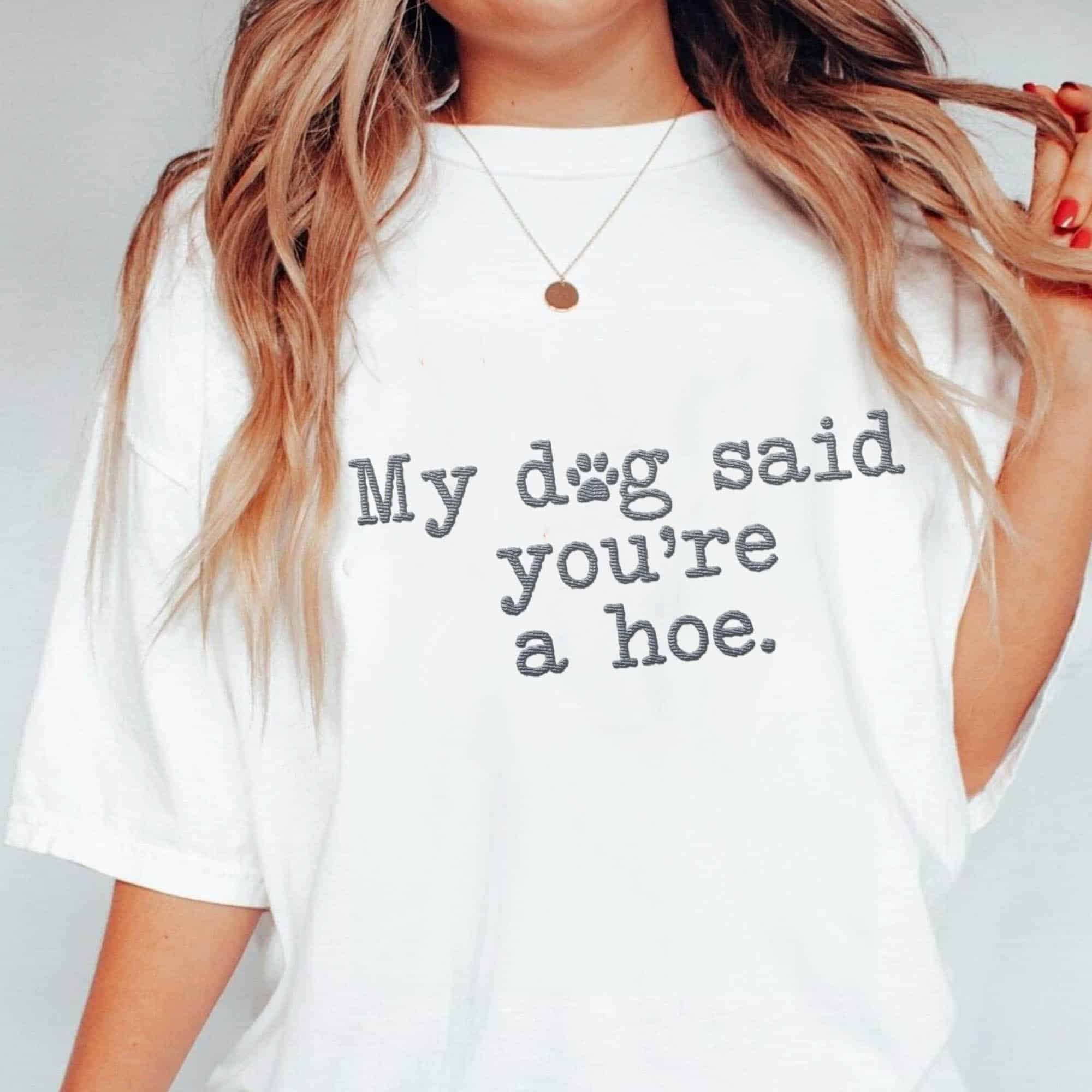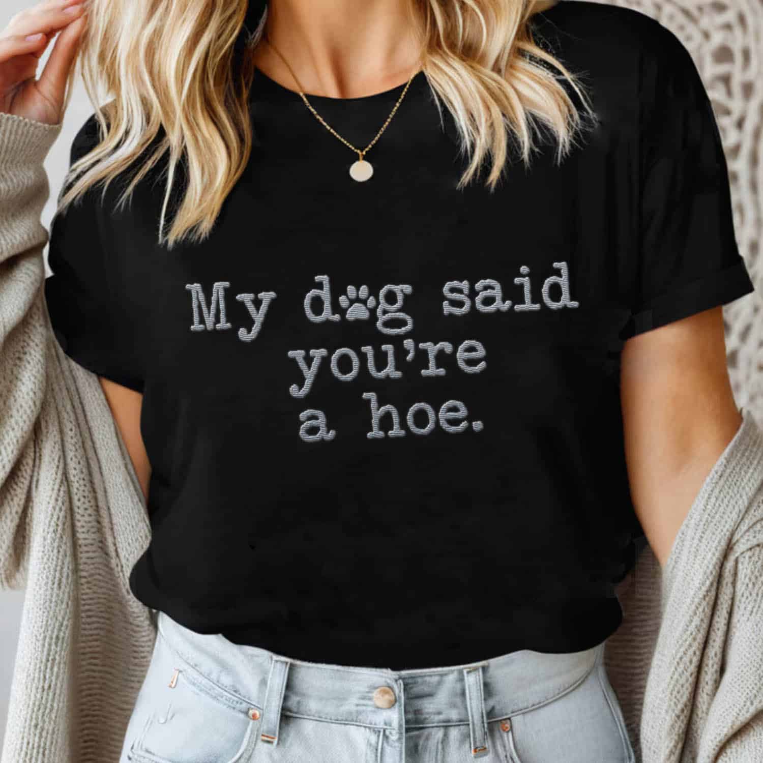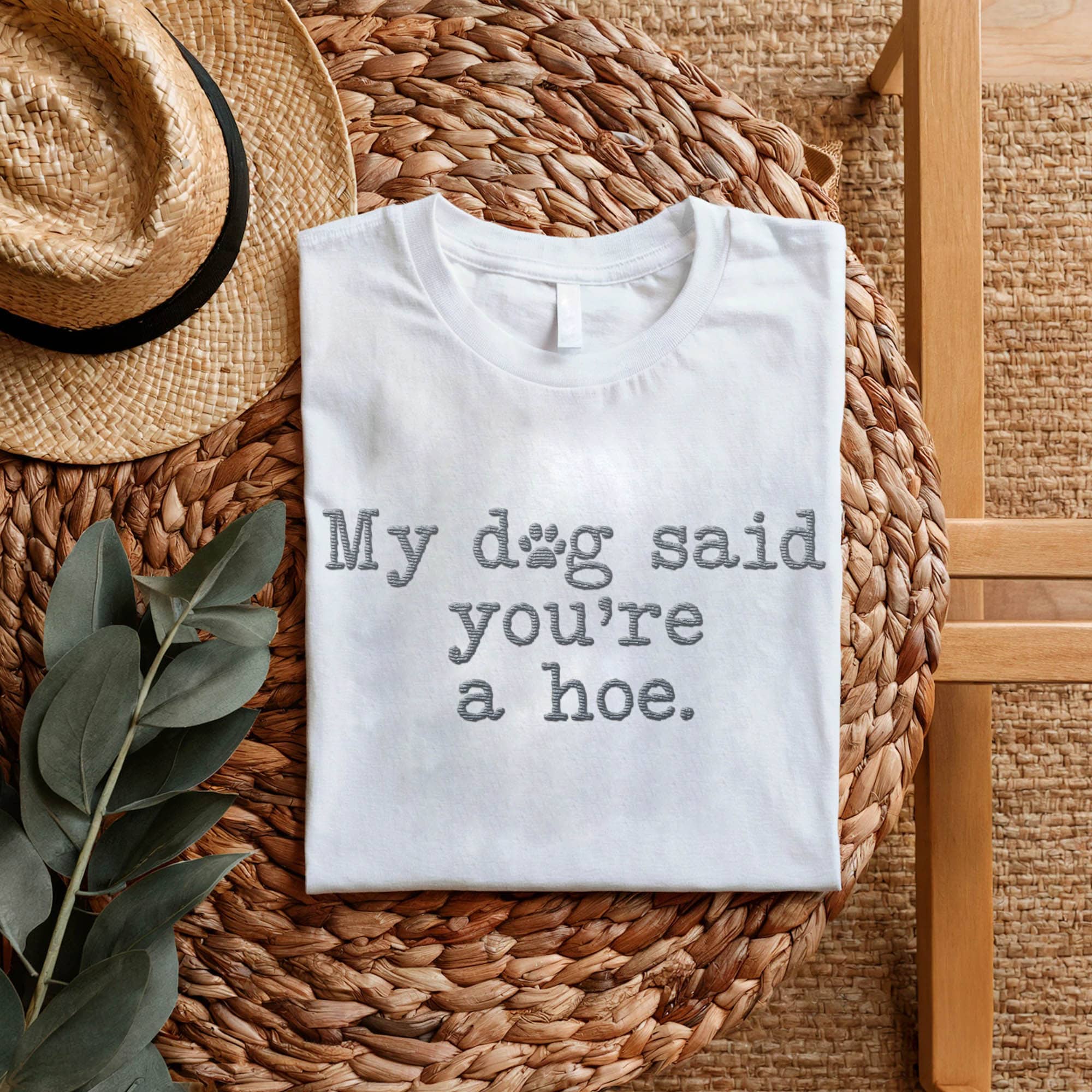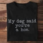 Are you spending too much time to find creative merchandise for you or suitable & special gifts for your mommy, your daddy, your son, your daughter, your children, your friends or someone you love? The struggle is over because we have various type of products such as My Dog Said You’re A Hoe Shirt, My Dog Said You’re A Hoe Embroidered Shirt, Embroidered Shirt, Dog Embroidered Shirt which will make perfect presents for your beloveds. In order to make your present stand out, we have created lots of unique and awesome customized photo gifts & personalized designs.
