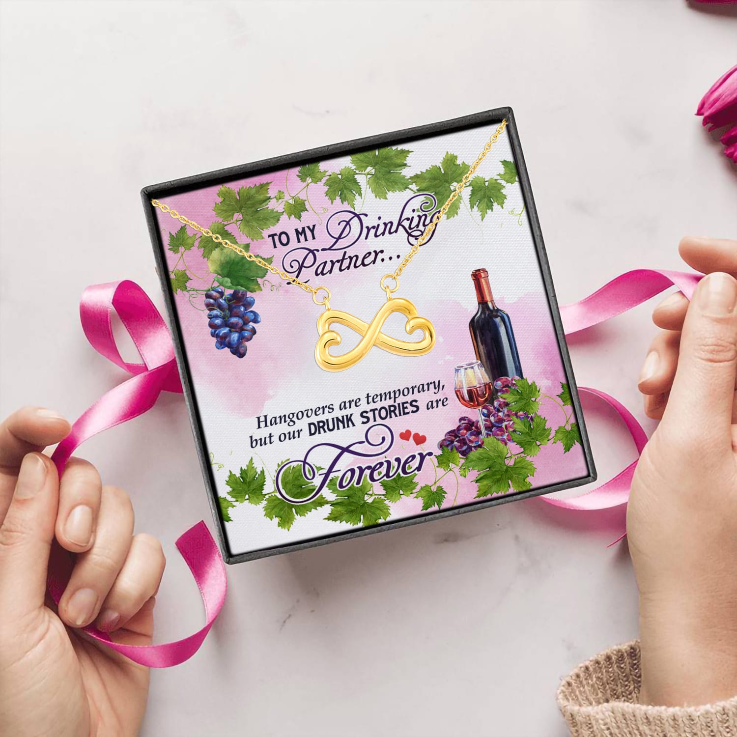 Let’s Shop Wine to My Drinking Partner Hangovers Are Temporary Infinity Heart Pendant Necklace!