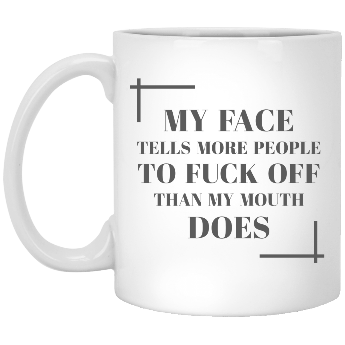 My Face Tells More People To Fuck Off Than My Mouth Does Mug – Beer Stein – Travel Mug – Water Bottle