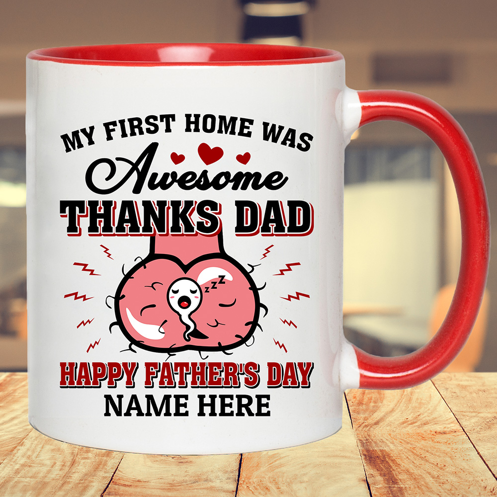 Shop Personalized My First Home Was Awesome Thanks Dad Happy Father’s Day Accent Mug.