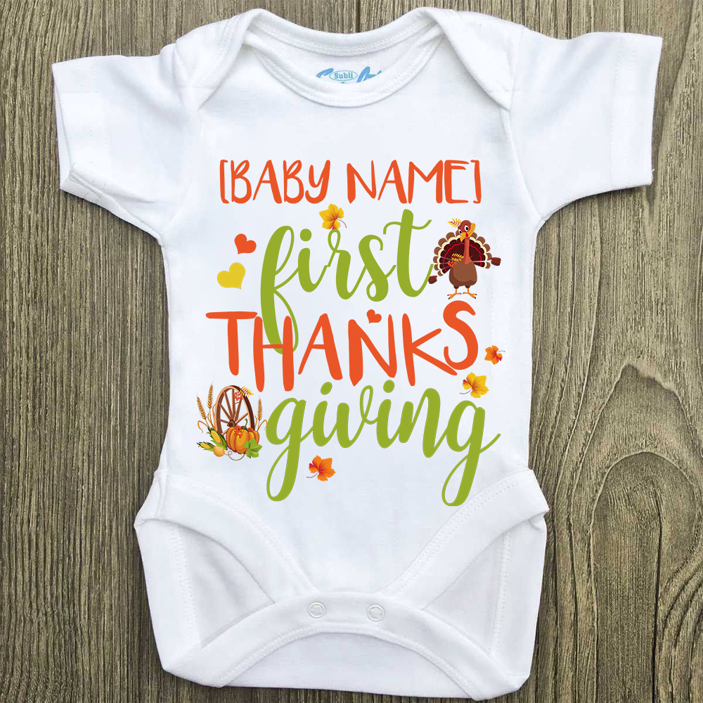 Let’s Shop Personalized First Thanksgiving Baby Onesie – Toddler Baby Infant Bodysuit!