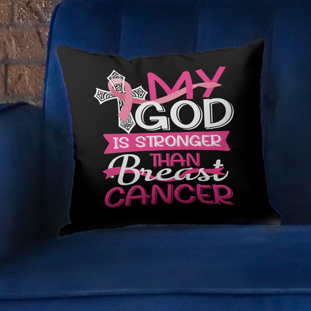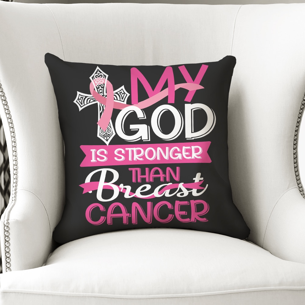 Let’s Shop My God Is Stronger Than Breast Cancer Breast Cancer Awareness Throw Pillow!