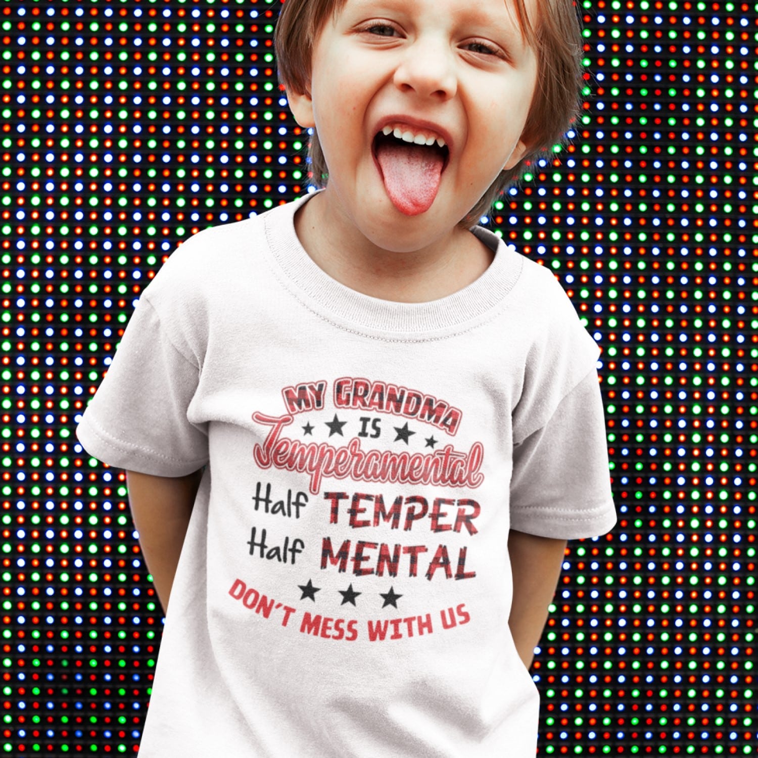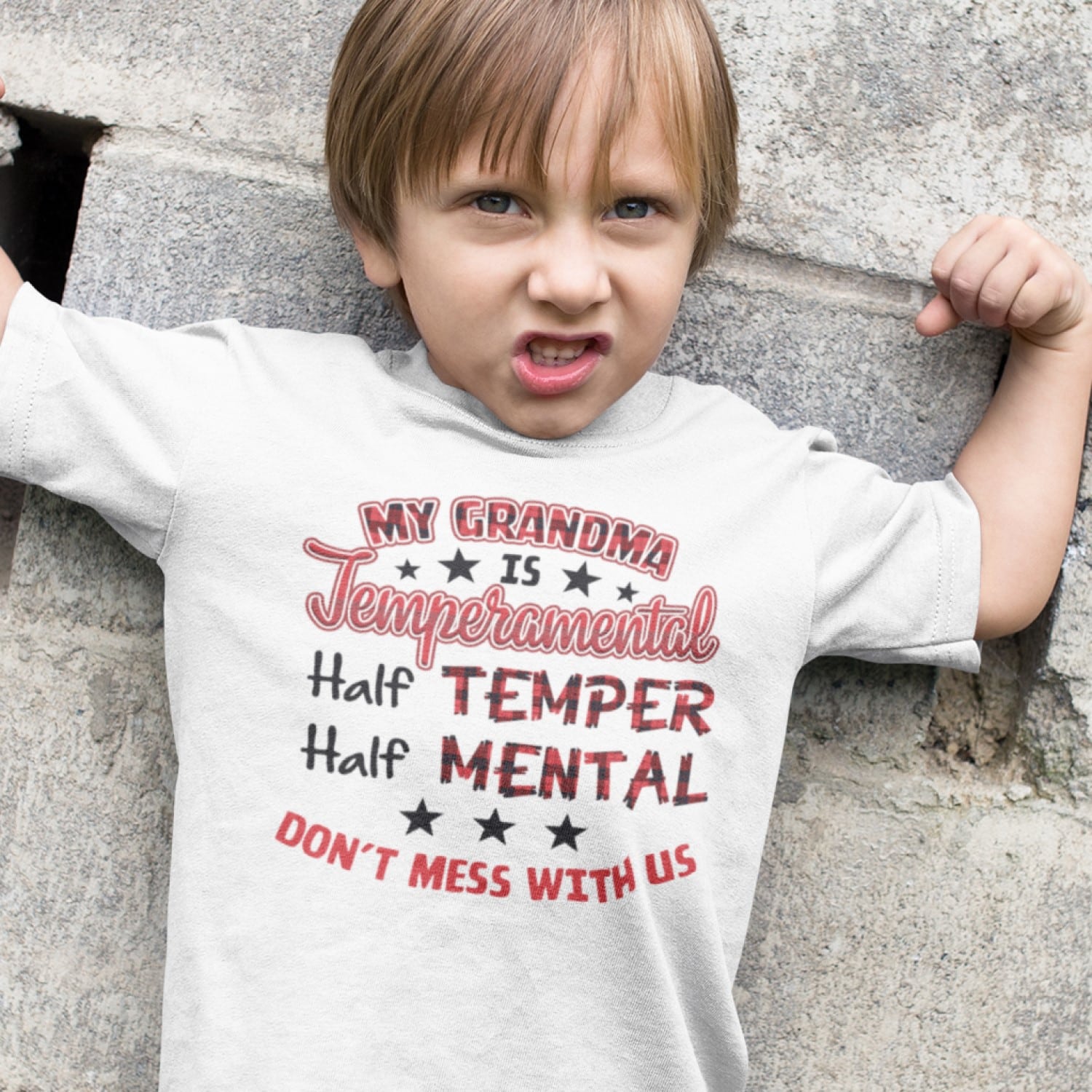 My Grandma Is Temperamental Half Temper Half Mental Don’t Mess With Us Funny Youth T-Shirt for Kids