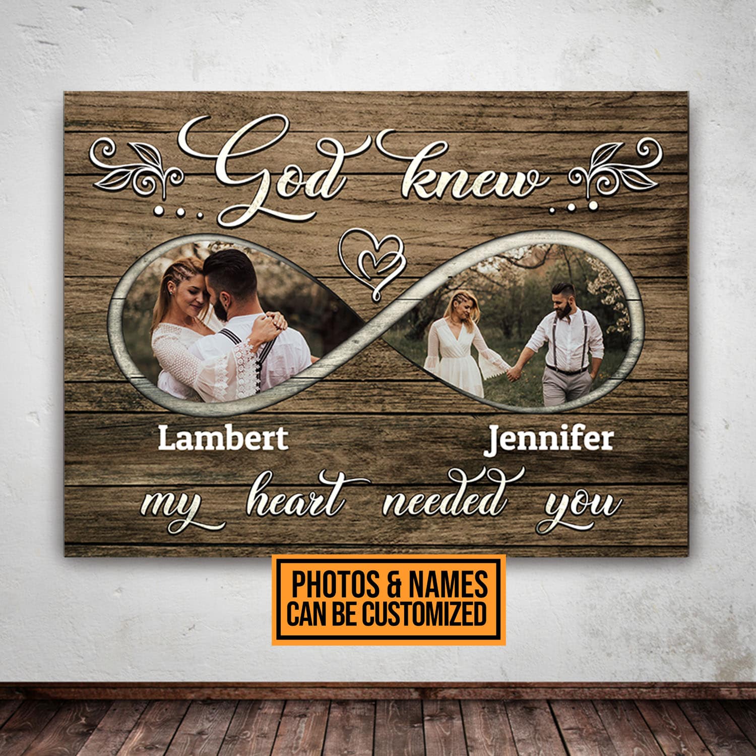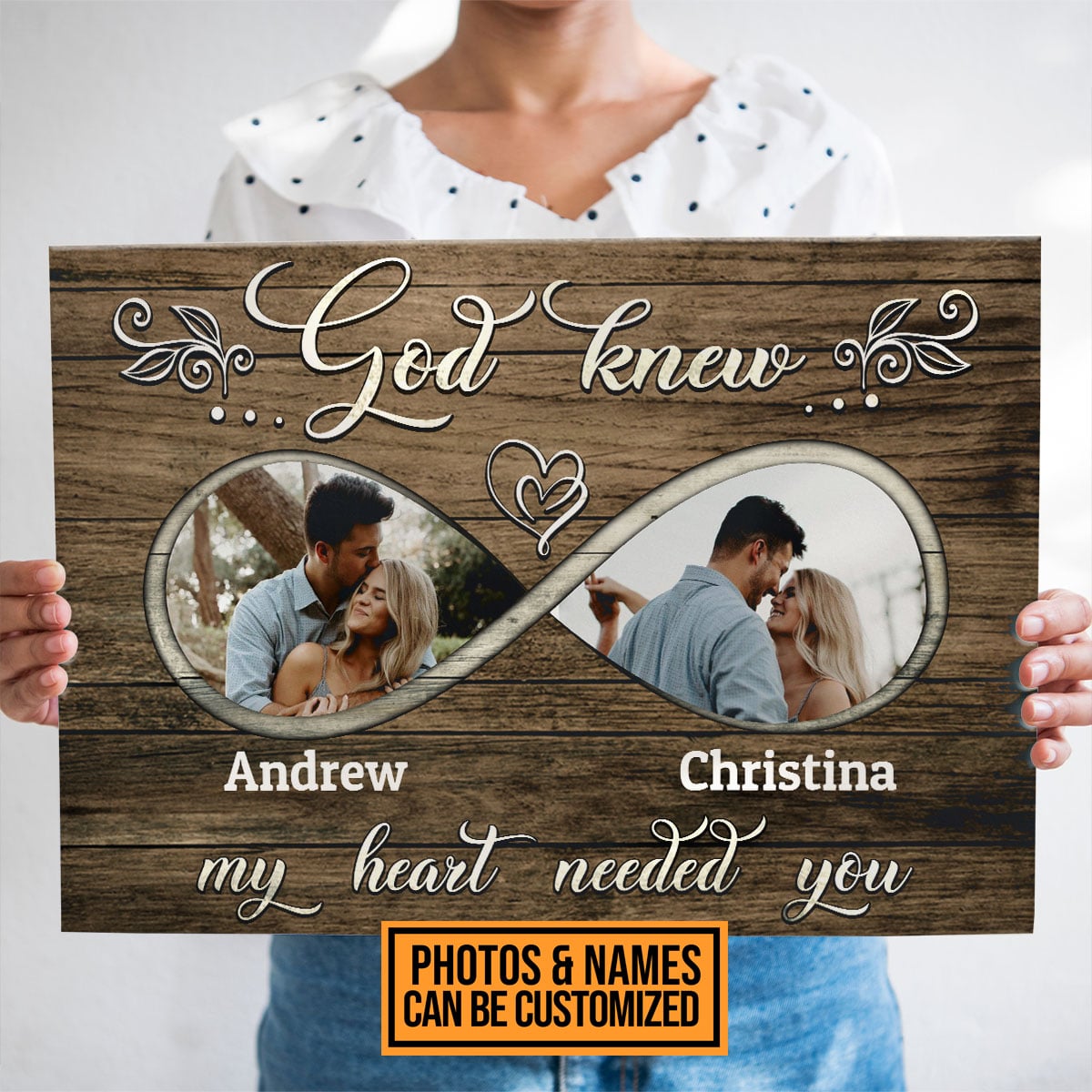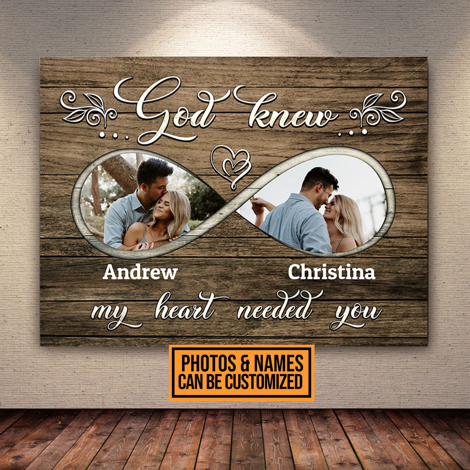 Let’s Shop God Knew My Heart Needed You Personalized Photo Couple Name Framed Canvas Prints – Unframed Poster!