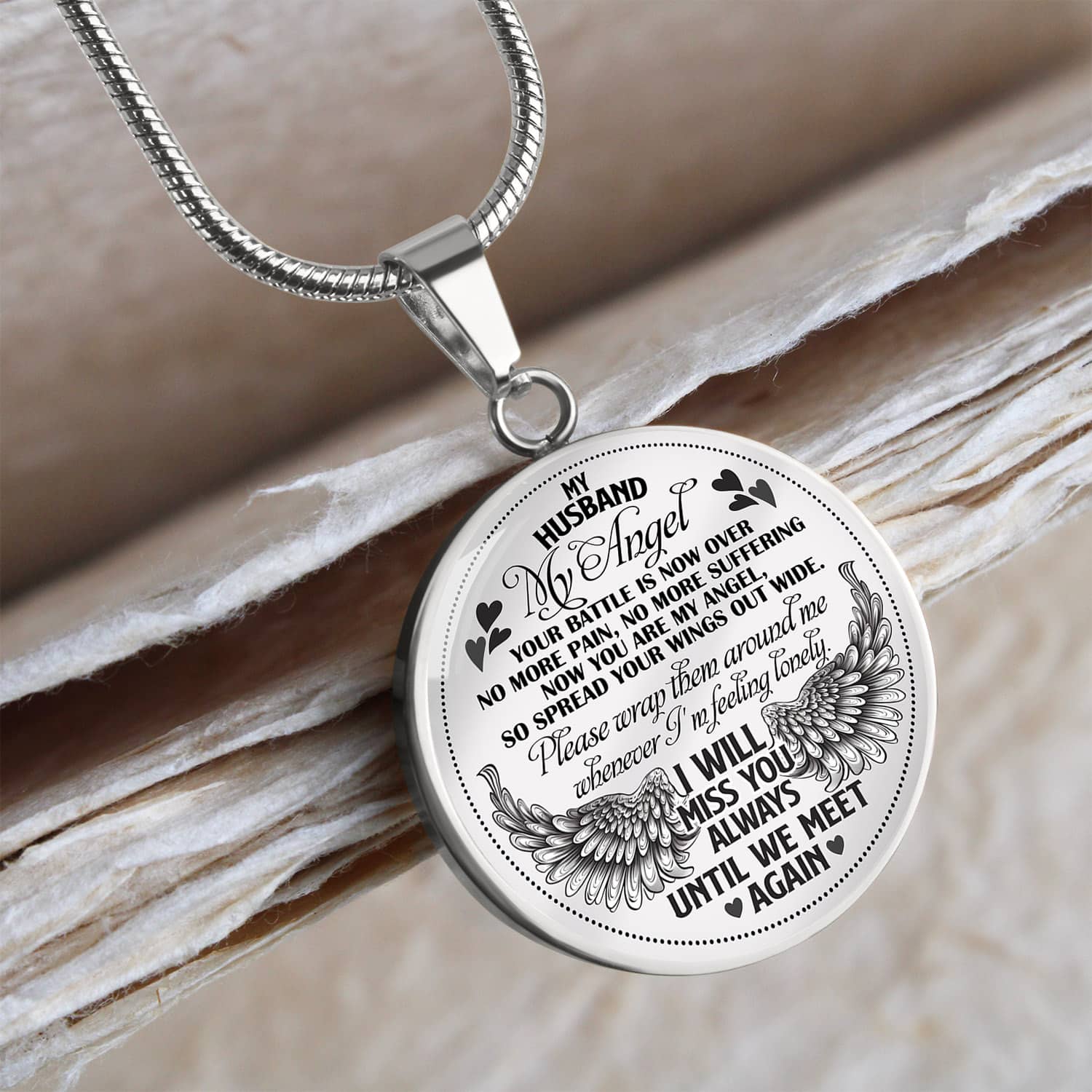 Are you spending too much time to find creative merchandise for you or suitable & special gifts for your mommy, your daddy, your son, your daughter, your children, your friends or someone you love? The struggle is over because we have various My Husband My Angel Your Battle Is Now Over No More Pain No More Suffering, in Heaven Gifts,in Heaven Necklace,in Heaven We Will Meet Again,memory Necklaces for Ashes, Husband Memorial Gifts for Wife, Memorial Gifts for Loss of Husband, Memorial Necklace which will make perfect presents for your beloveds. In order to make your present stand out, we have created lots of unique and awesome customized photo gifts & personalized designs.