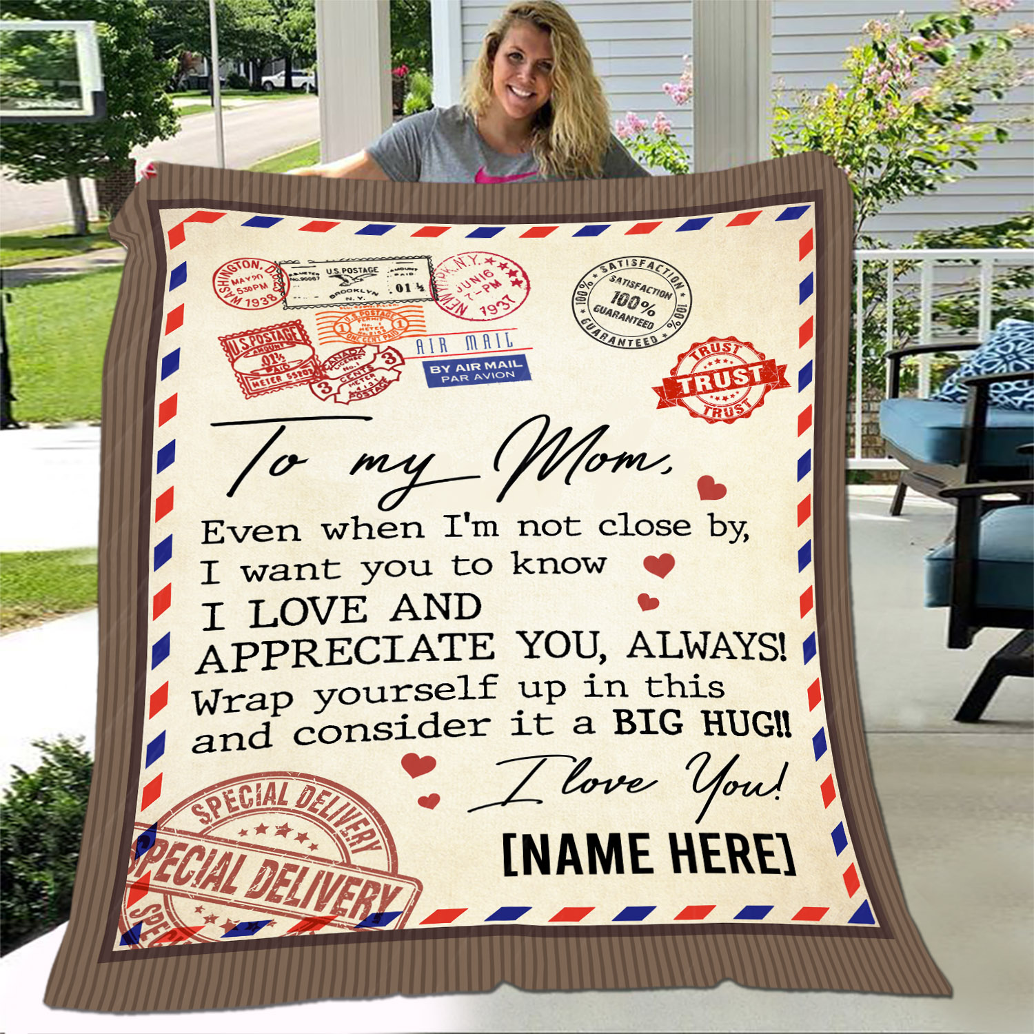 Shop Personalized To My Mom Even When I’m Not Close by – Letter Fleece Blanket – Premium Sherpa Blanket – Woven Blanket.