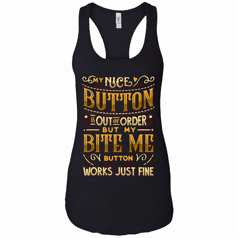 My Nice Button Is Out Of Order But My Bite Me Button Works Just Fine Cotton Tank Top Tee – Ladies Racerback Tank