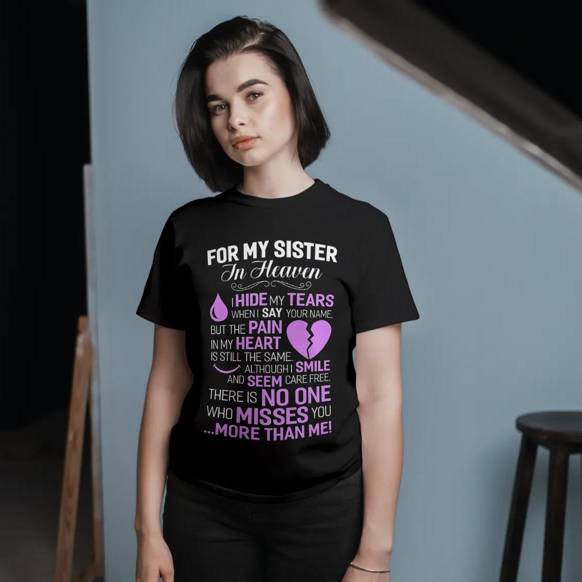 For My Sister In Heaven I Hide My Tear In Loving Memory T-shirt – V-neck – Memorial Shirt For Loss Of Sister