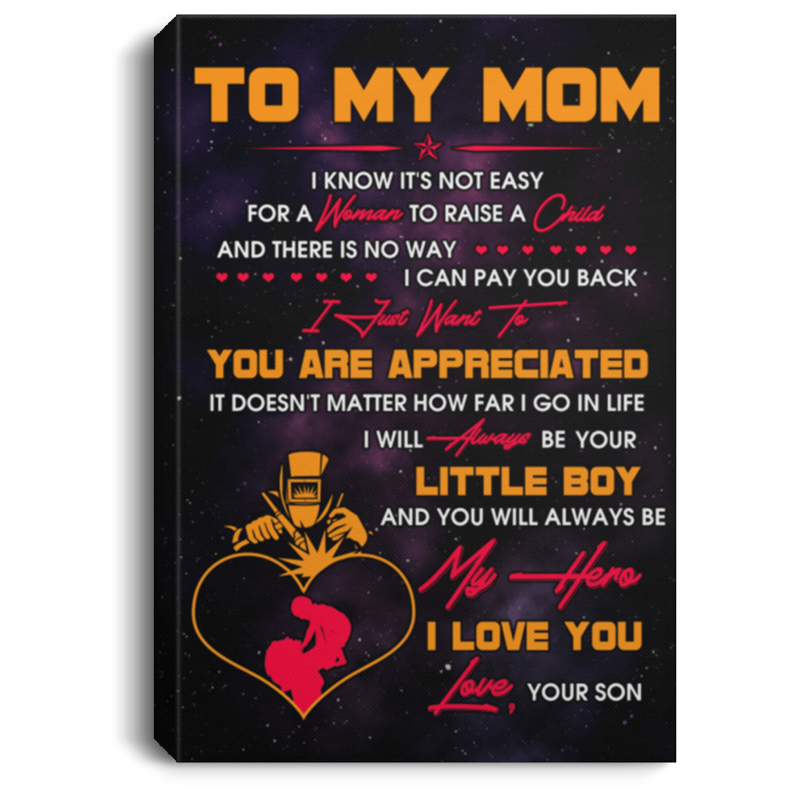Son to My Mom I Know Not Easy for Woman to Raise a Child Welder Framed Canvas Prints – Unframed Poster