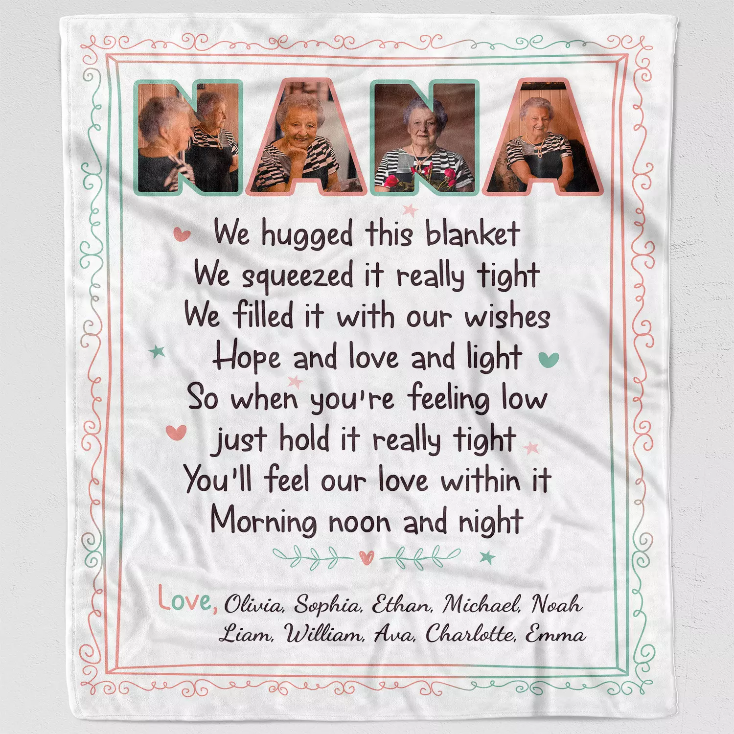 Let’s Shop Personalized Photo Nana We Hugged This Blanket We Sqeezed It Really Tight Fleece-Mink Sherpa-Woven Blanket!