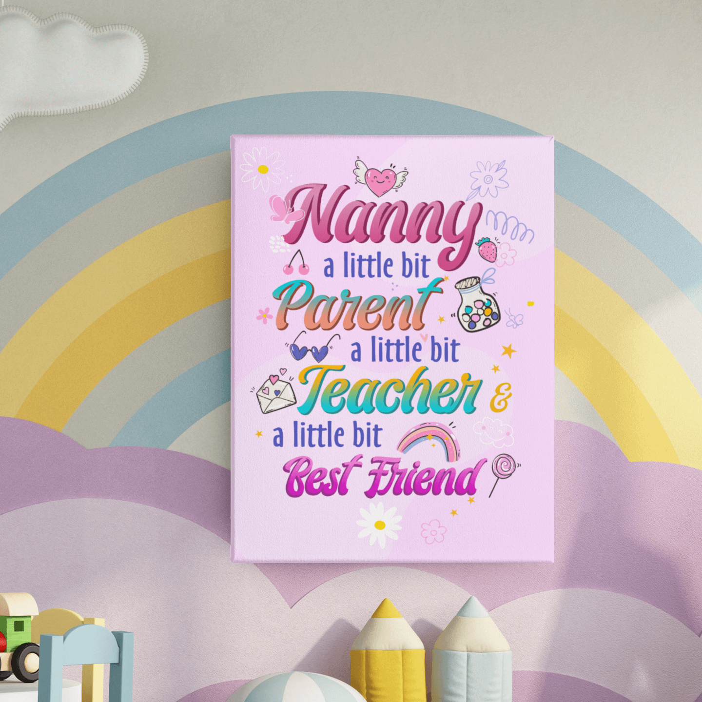 Let’s Shop Nanny A Little Bit Parent A Little Bit Teacher Gallery Wrapped Framed Canvas-Poster-Home Decor Wall Art!