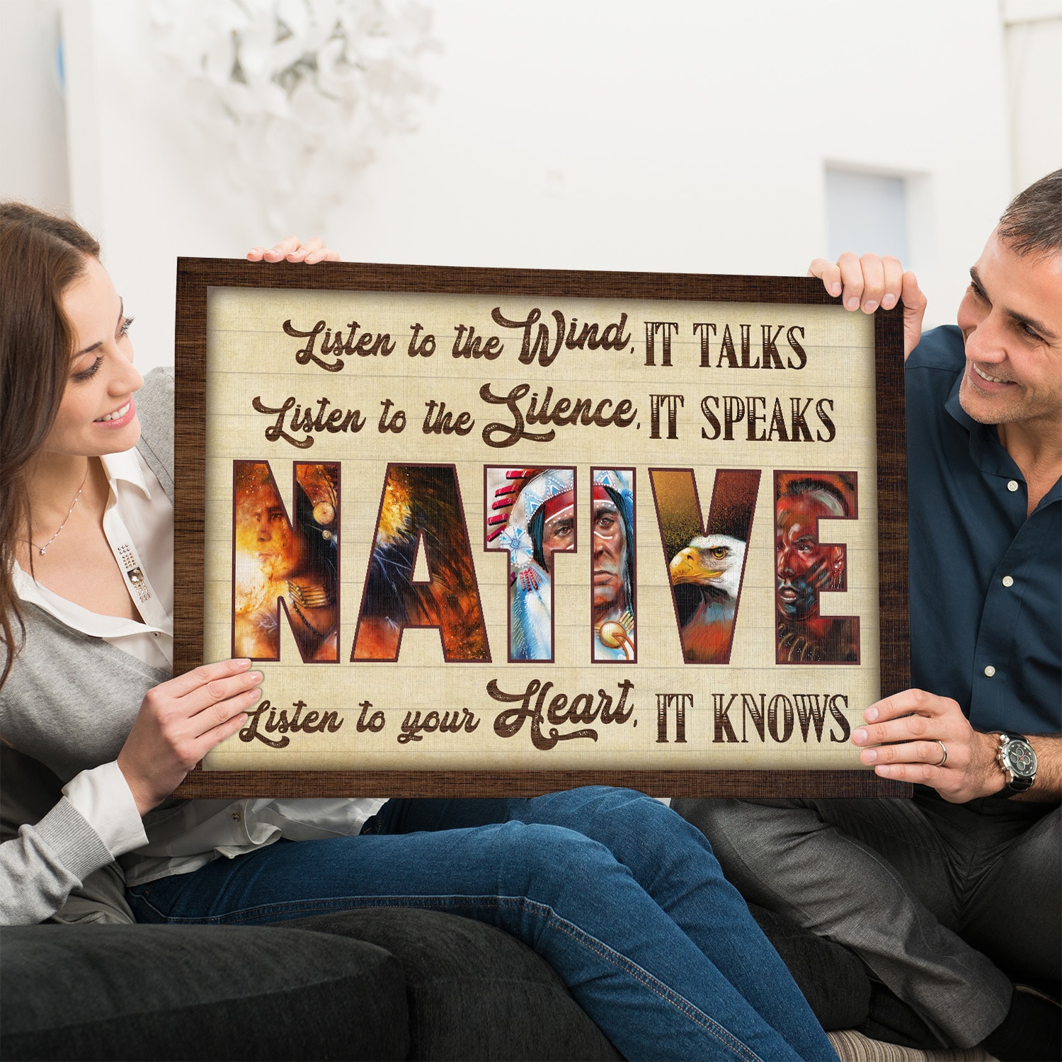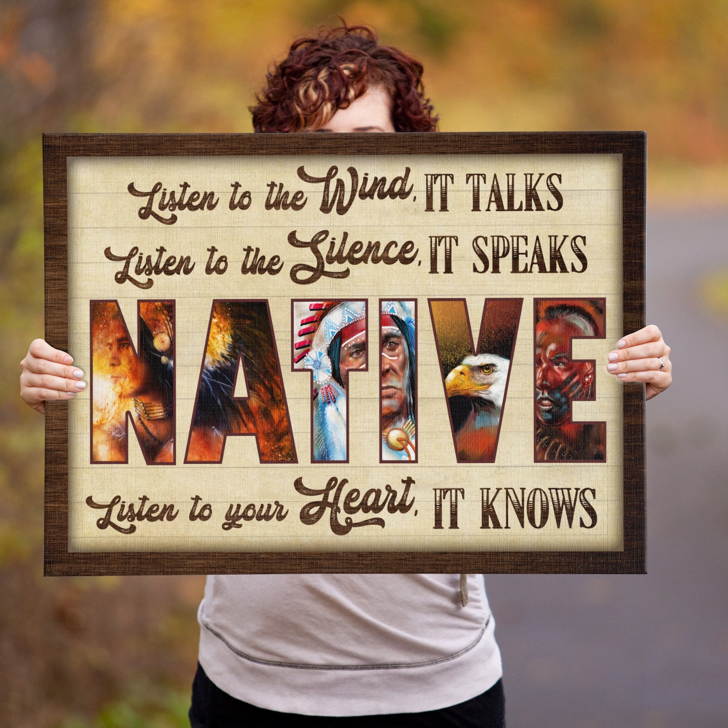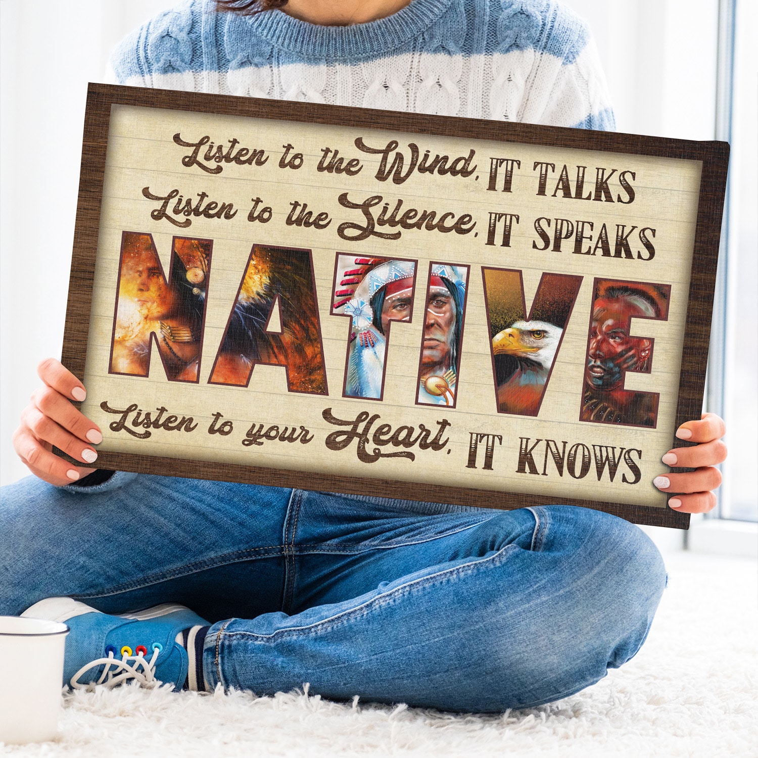 Let’s Shop Native American Wall Art Listen to The Wind It Talks Listen to The Silence It Speaks Gallery Wrapped Framed Canvas Print Home Decor!