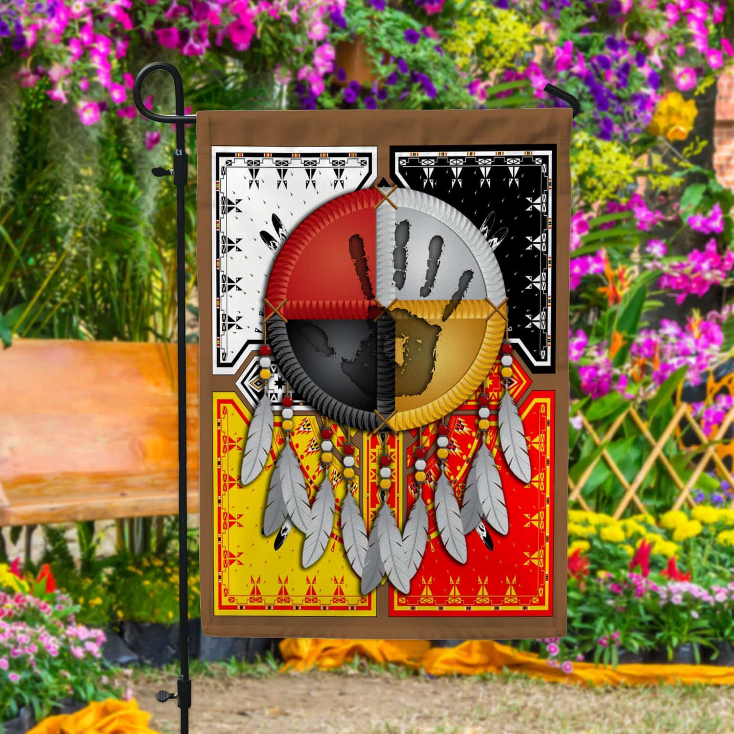 Let’s Shop Native American Colors Of The 4 Directions Outdoor Garden Flag – House Flag – Wall Flag!