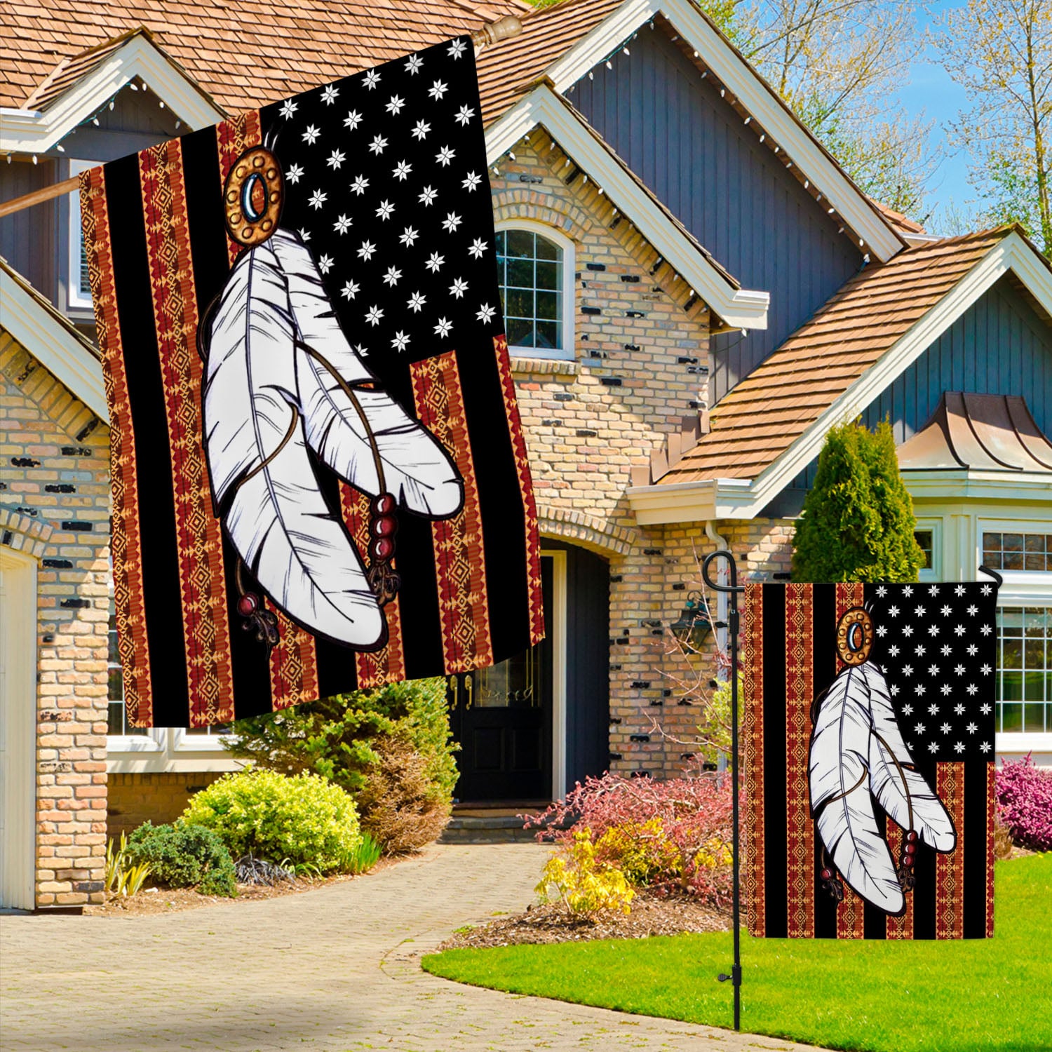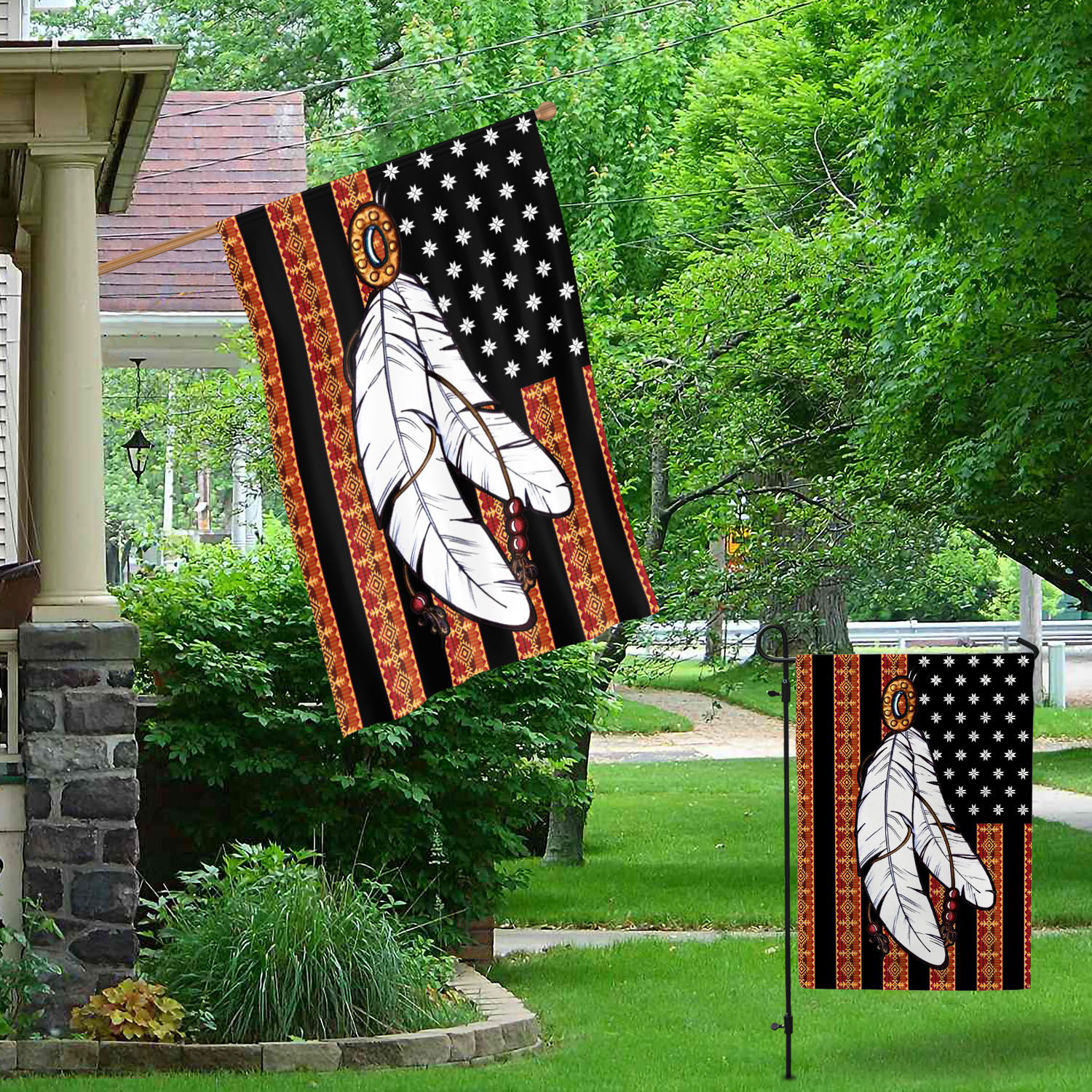 Let’s Shop Native American Feather Outdoor House Flag – Native American Home Garden Flag – Native American House Decor!