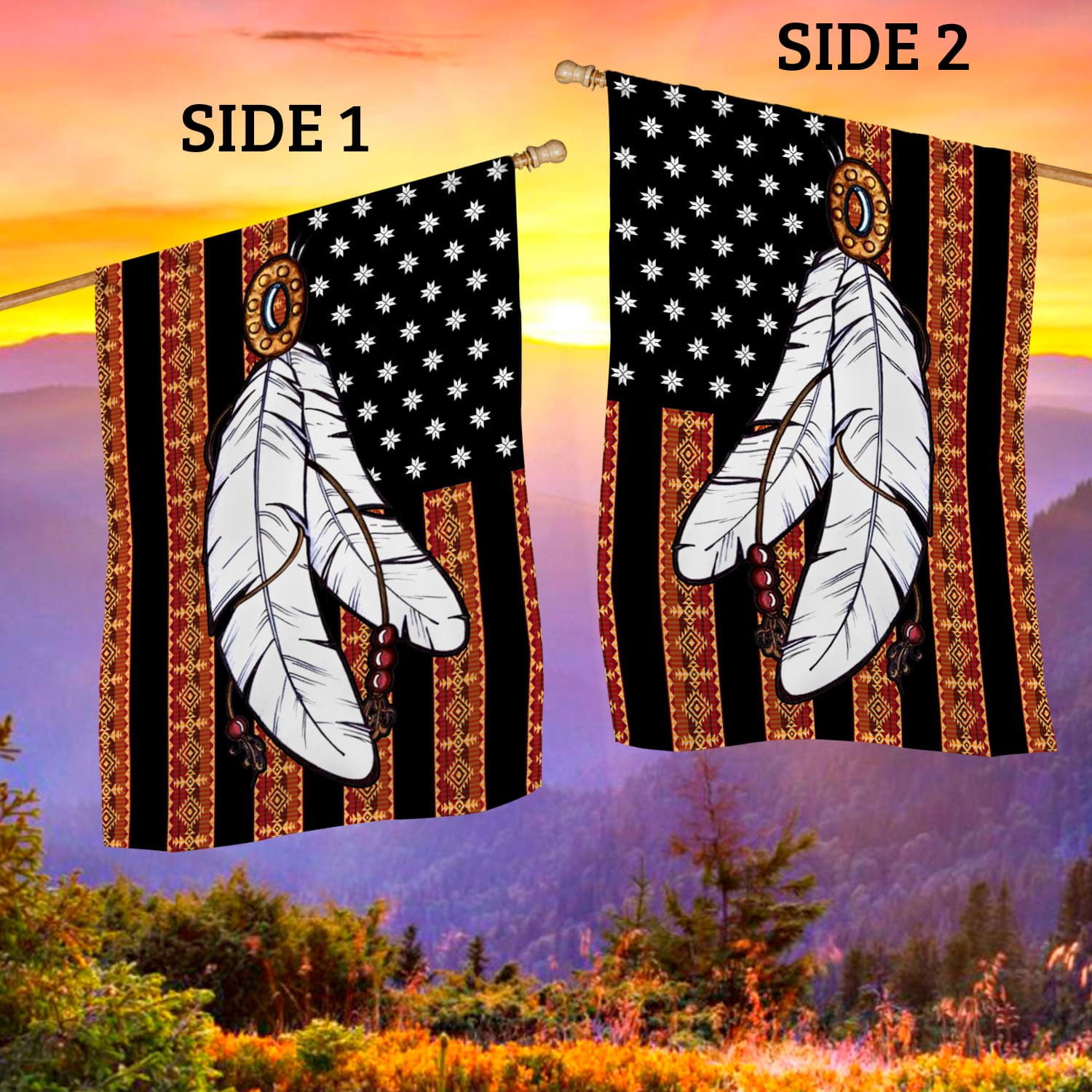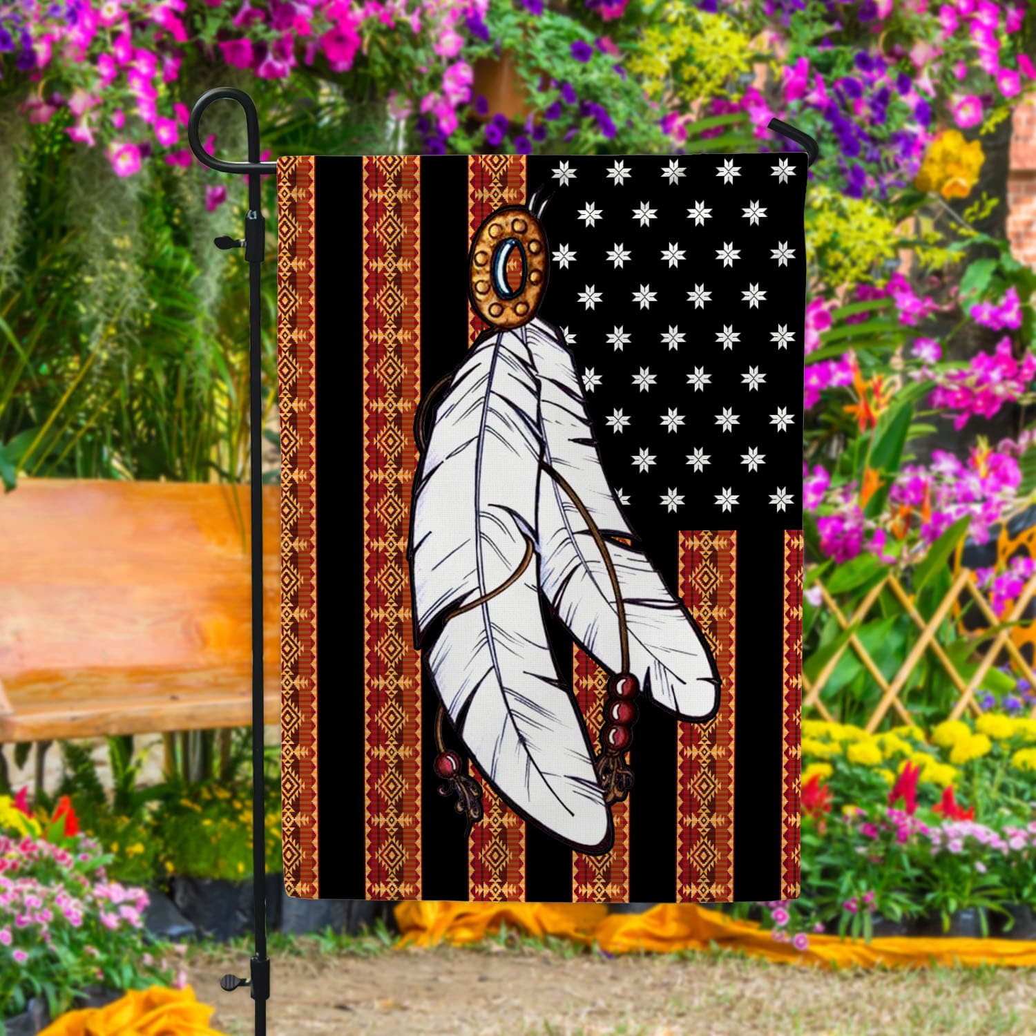 Are you spending too much time to find creative merchandise for you or suitable & special gifts for your mommy, your daddy, your son, your daughter, your children, your friends or someone you love? The struggle is over because we have various Native American Feather Flag, Native American Flag with Feathers on It, Native American Flags, Native American Pride Flag, Native American Garden Flag, Native American Flag for Outside, Native American Outdoor Flag, Native American Prayer Flags which will make perfect presents for your beloveds. In order to make your present stand out, we have created lots of unique and awesome customized photo gifts & personalized designs.