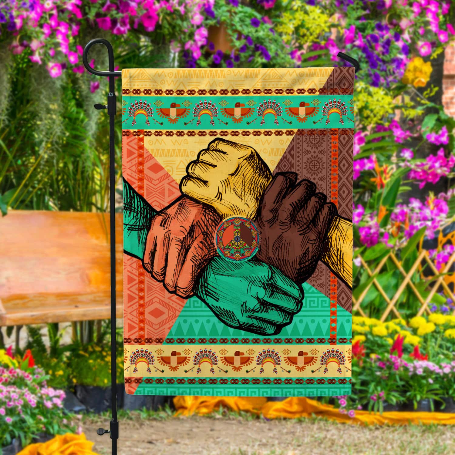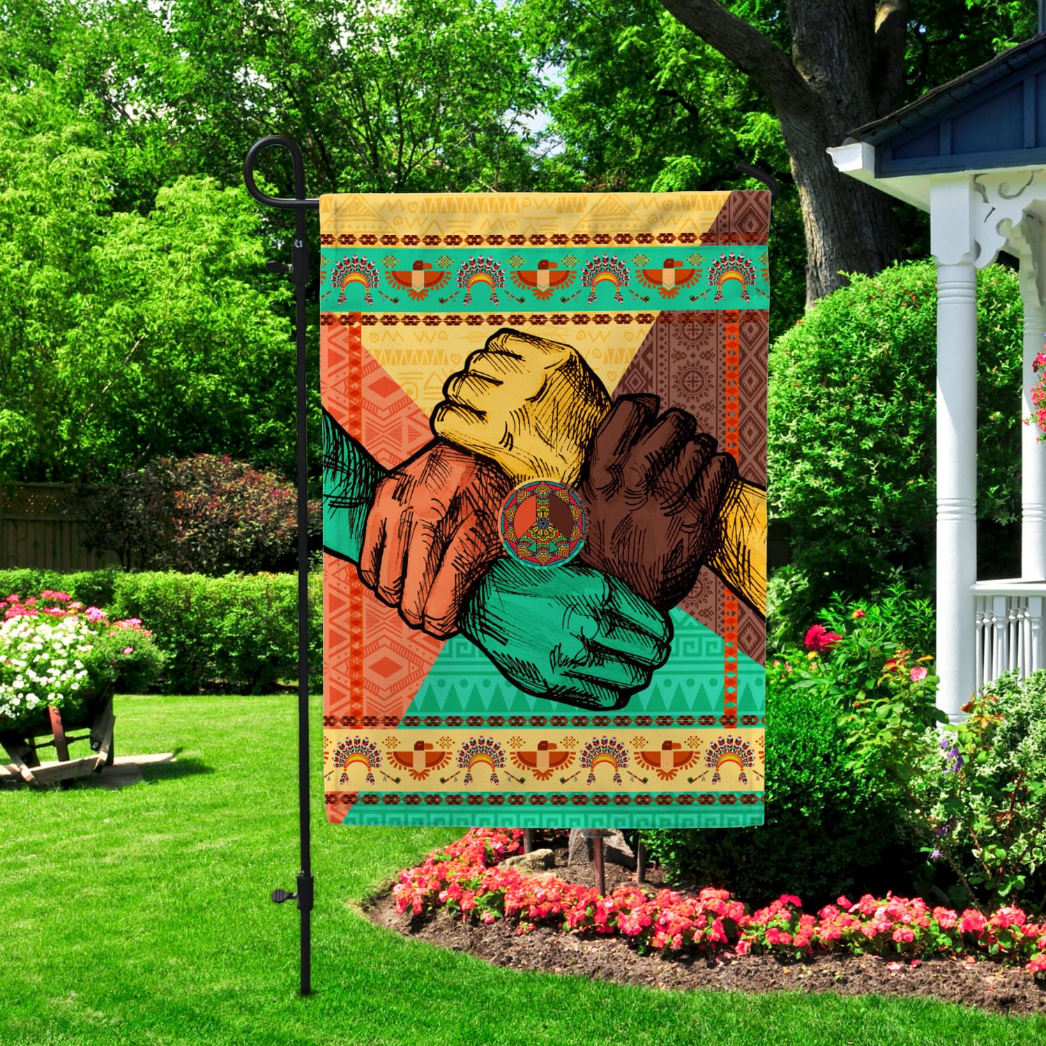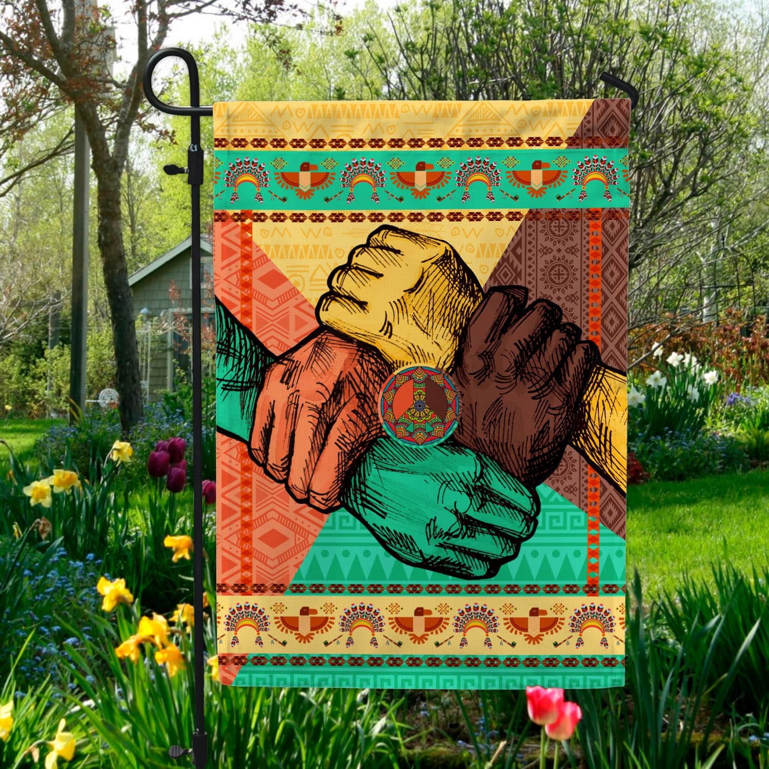 Let’s Shop Native American Hands Together Outdoor House Flag – Native American Pride Home Garden Flag!