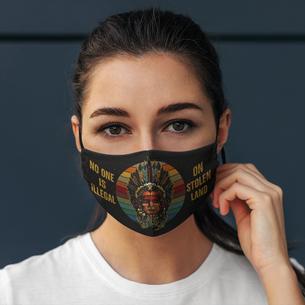 Shop No One Is Illegal On Stolen Land – Native American Face Mask – Washable Reusable Custom – Printed Cloth Face Mask Cover.