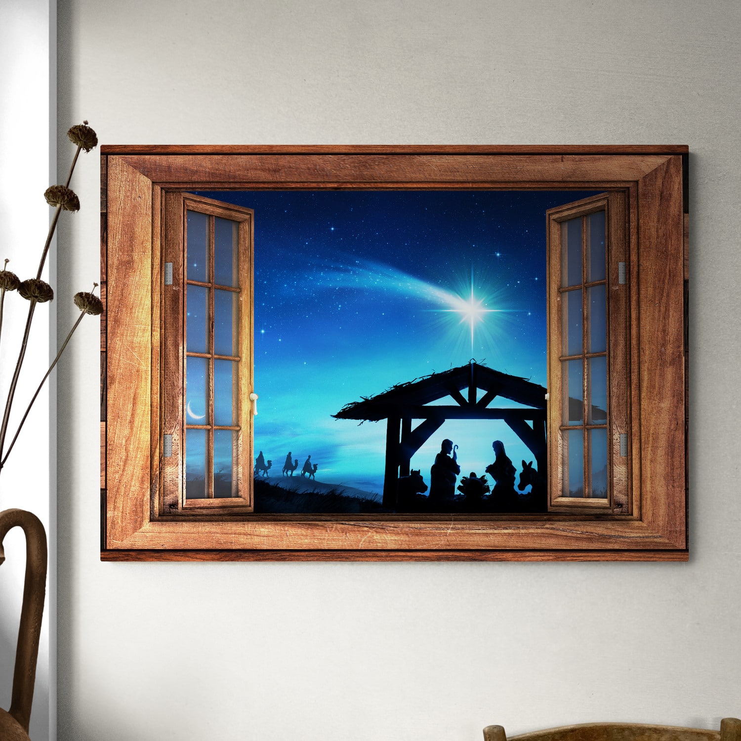Let’s Shop Jesus Christmas Nativity Scene Window Framed Canvas Prints – The Birth Of Jesus Christ Wall Art Decor – Poster!