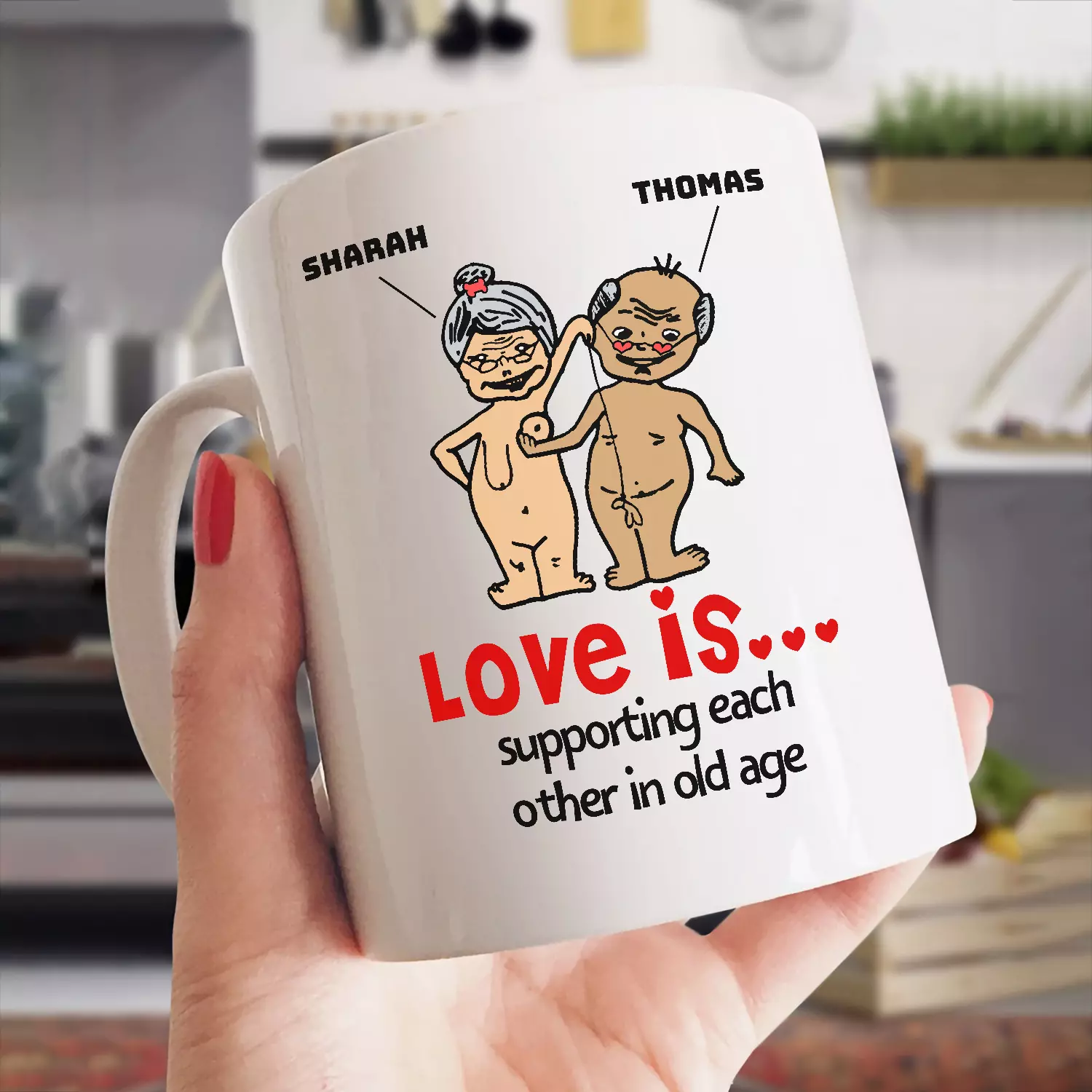 Let’s Shop Personalized Love Is Supporting Each Other In Old Age Funny Old Couple Coffee Mug – Beer Stein – Water Bottle!