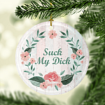 Suck My Dick Naughty Christmas Ornament Keepsake - Holiday Flat Circle Porcelain Ceramic Ornament