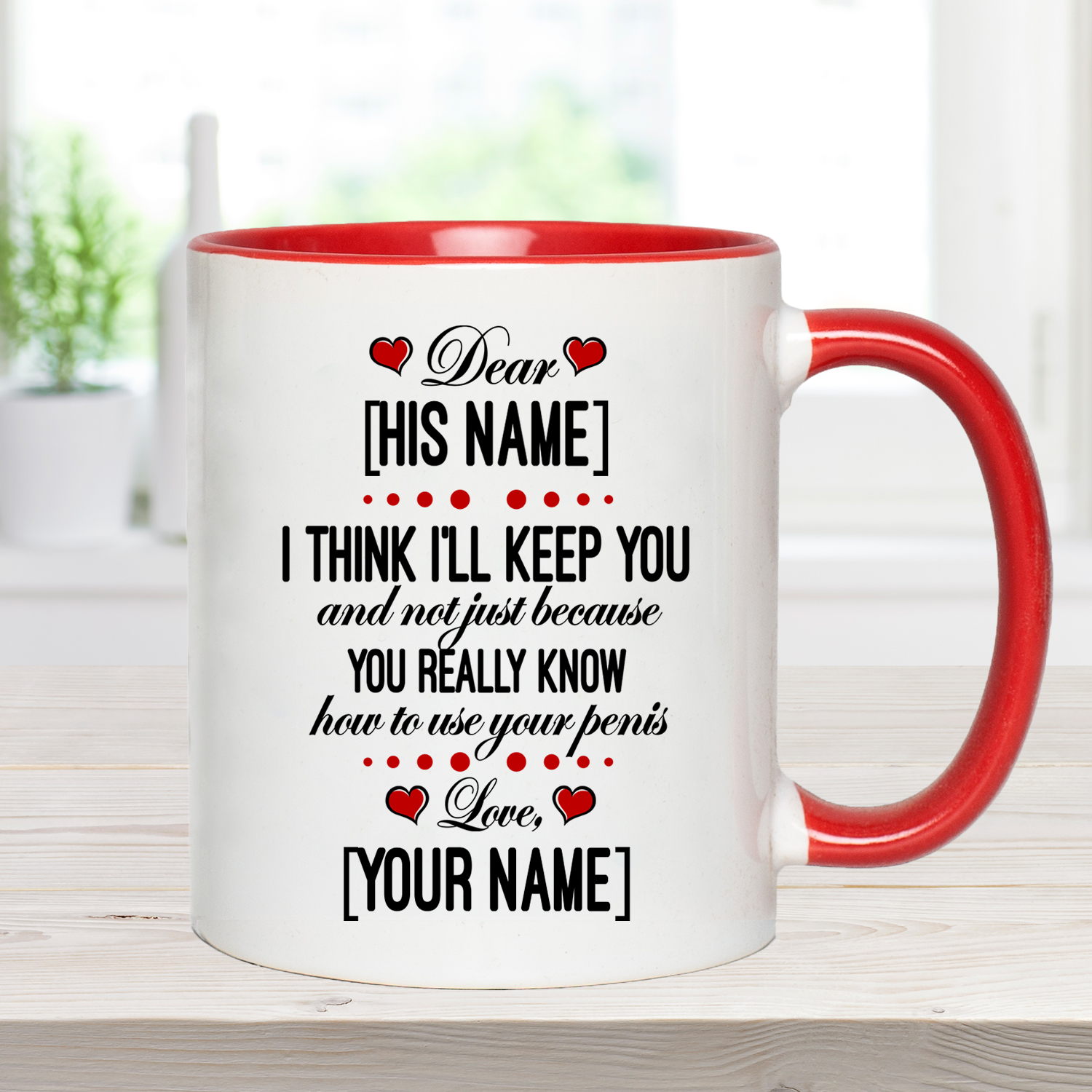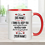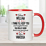 Shop Personalized I Think I’ll Keep You And Not Just Because You Really Know How To Use Your Penis Accent Mug.