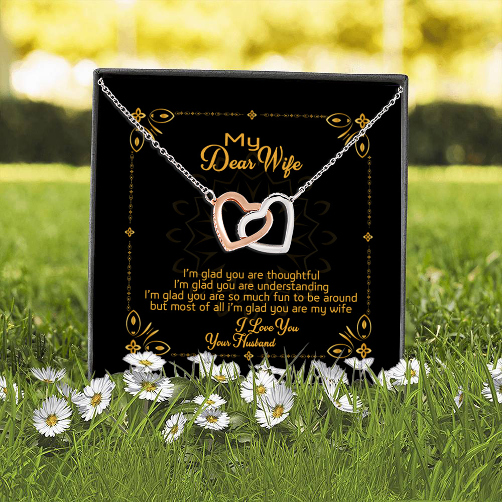 Let’s Shop My Dear Wife I’m Glad You Are Thoughtful and Understanding Love You from Husband Interlocking Hearts Pendant Necklace!