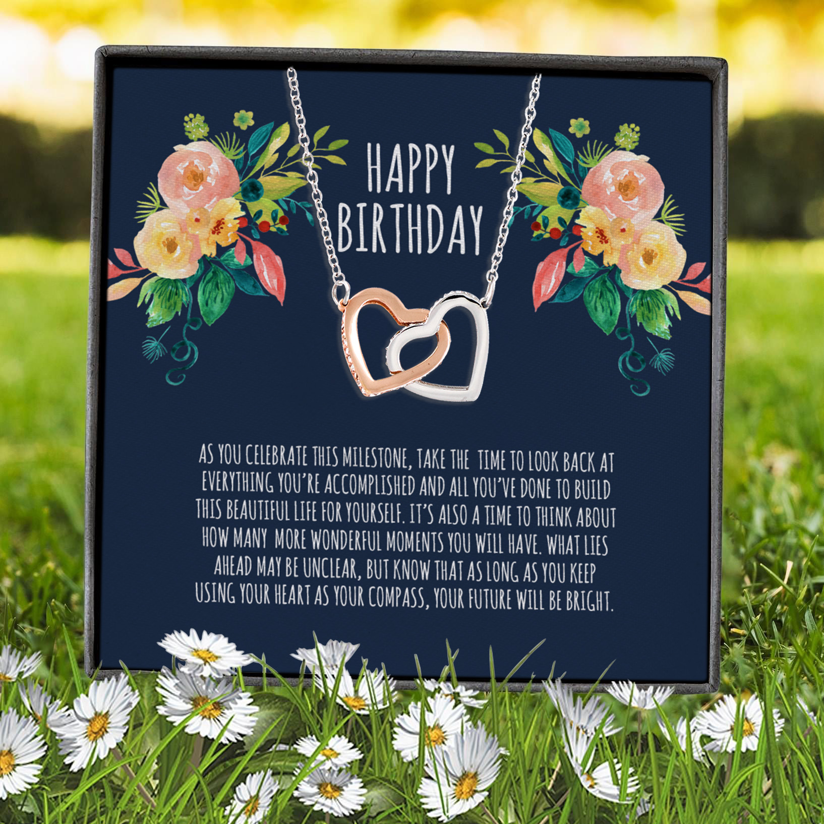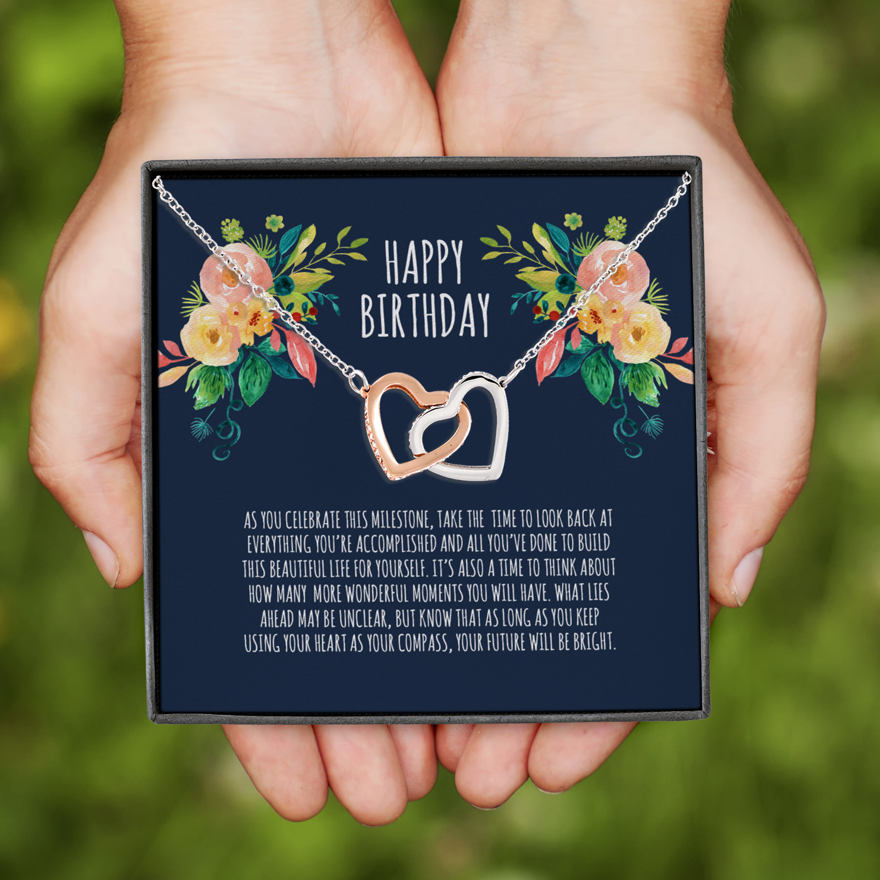 Let’s Shop Happy Birthday To You Your Future Will Be Bright Interlocking Hearts Pendant Necklace!