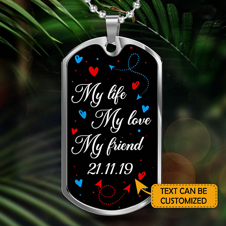 Let’s Shop Personalized My Life My Love My Friend Dog Tag Pendant Necklace!