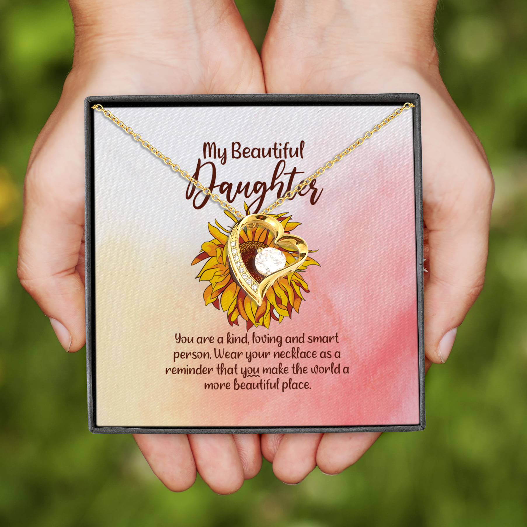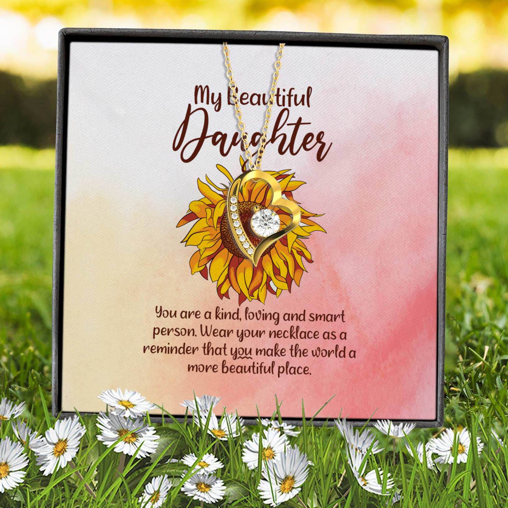 Let’s Shop My Beautiful Daughter You Are A Kind Loving And Smart Person Sunflower Forever Love Heart Pendant Necklace!