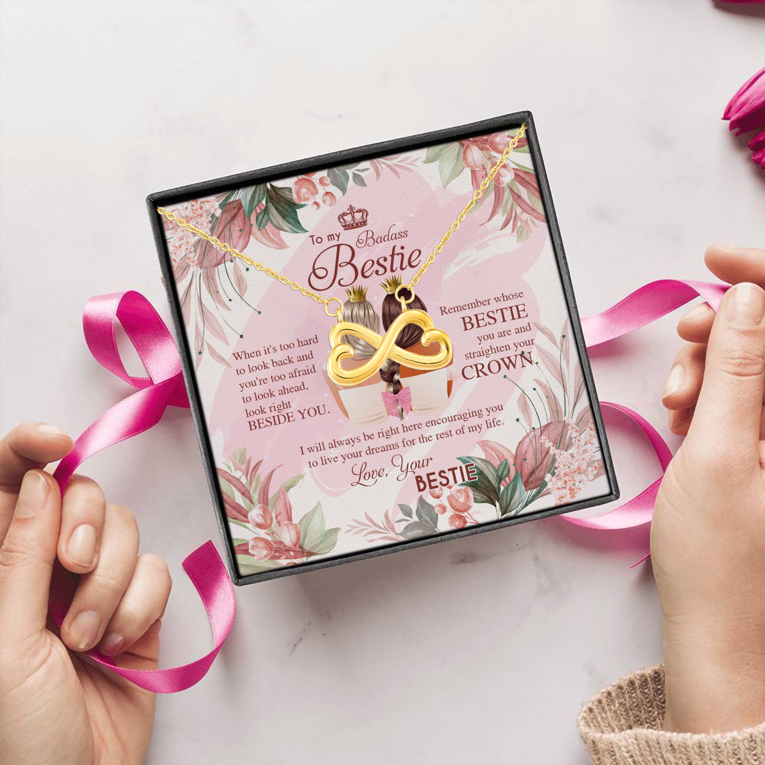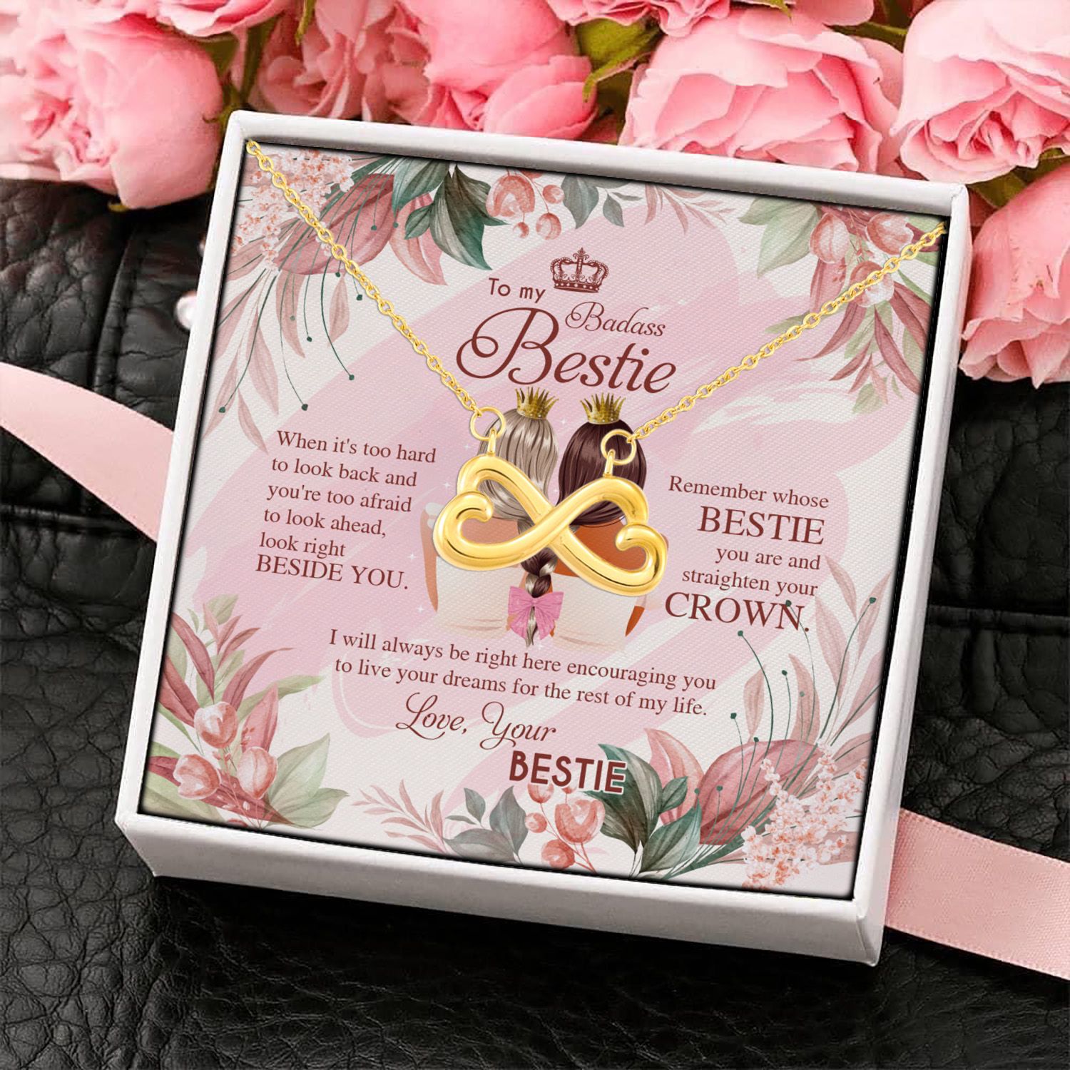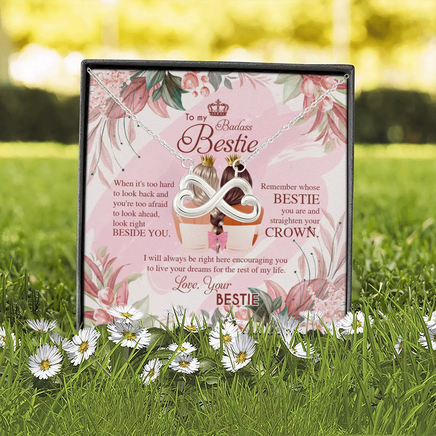 Let’s Shop To My Badass Bestie Remember Whose Bestie You Are And Straighten Your Crown Infinity Heart Pendant Necklace!