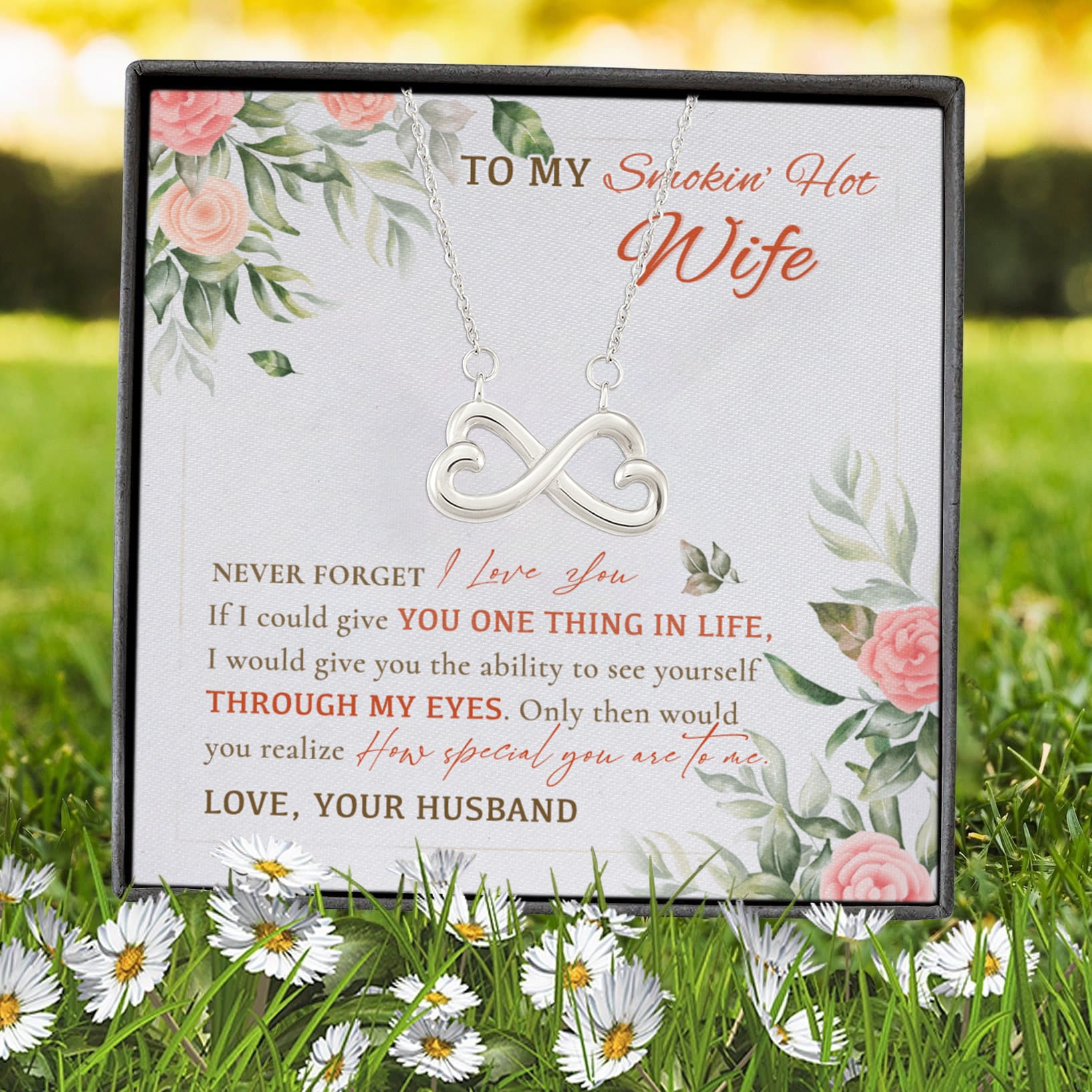 Are you spending too much time to find creative merchandise for you or suitable & special gifts for your mommy, your daddy, your son, your daughter, your children, your friends or someone you love? The struggle is over because we have various Smokin Hot Wife Necklace, to My Wife Necklace from Husband, Husband Necklace from Wife, Wife Gifts from Husband Necklace, Necklace for Wife from Husband, Necklace to Wife from Husband, to My Beautiful Wife Necklace, Necklaces for Wife from Husband which will make perfect presents for your beloveds. In order to make your present stand out, we have created lots of unique and awesome customized photo gifts & personalized designs.
