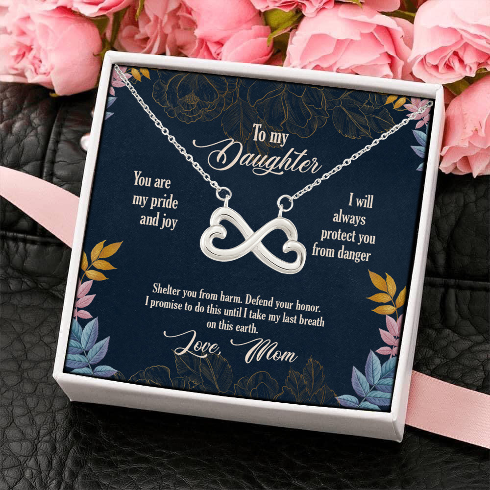 Let’s Shop To My Daughter You Are My Pride and Joy Protect You Love Mom Infinity Heart Pendant Necklace!