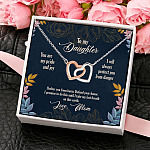 Let’s Shop To My Daughter You Are My Pride and Joy Protect You Love Mom Interlocking Hearts Pendant Necklace!