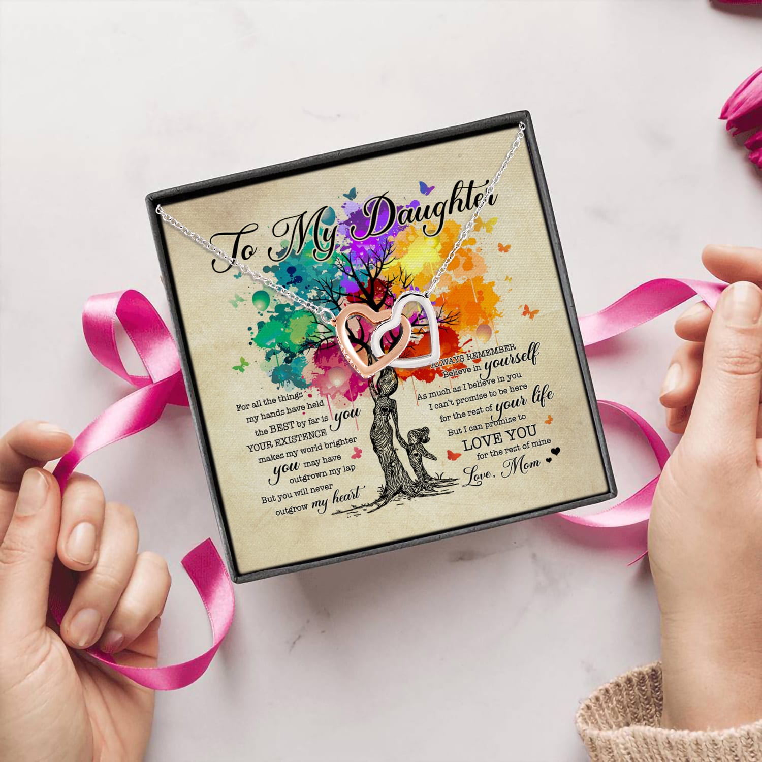 Let’s Shop To My Daughter For All the Things My Hands Have Held The Best Is You from Mom Interlocking Hearts Necklace!