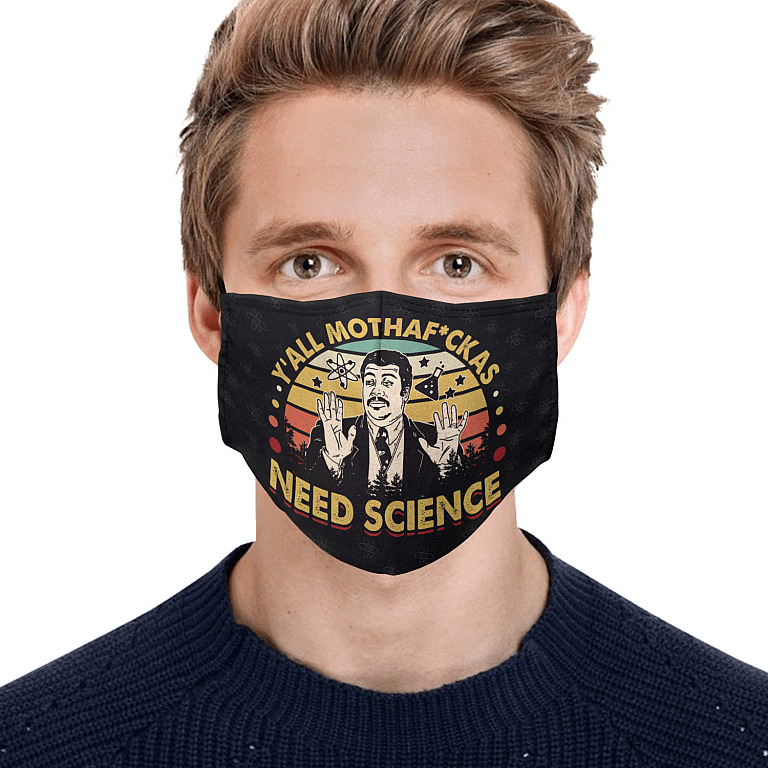 Shop Y’all Mothafckas Need Science Vintage Washable Reusable Custom – Printed Cloth Face Mask Cover.