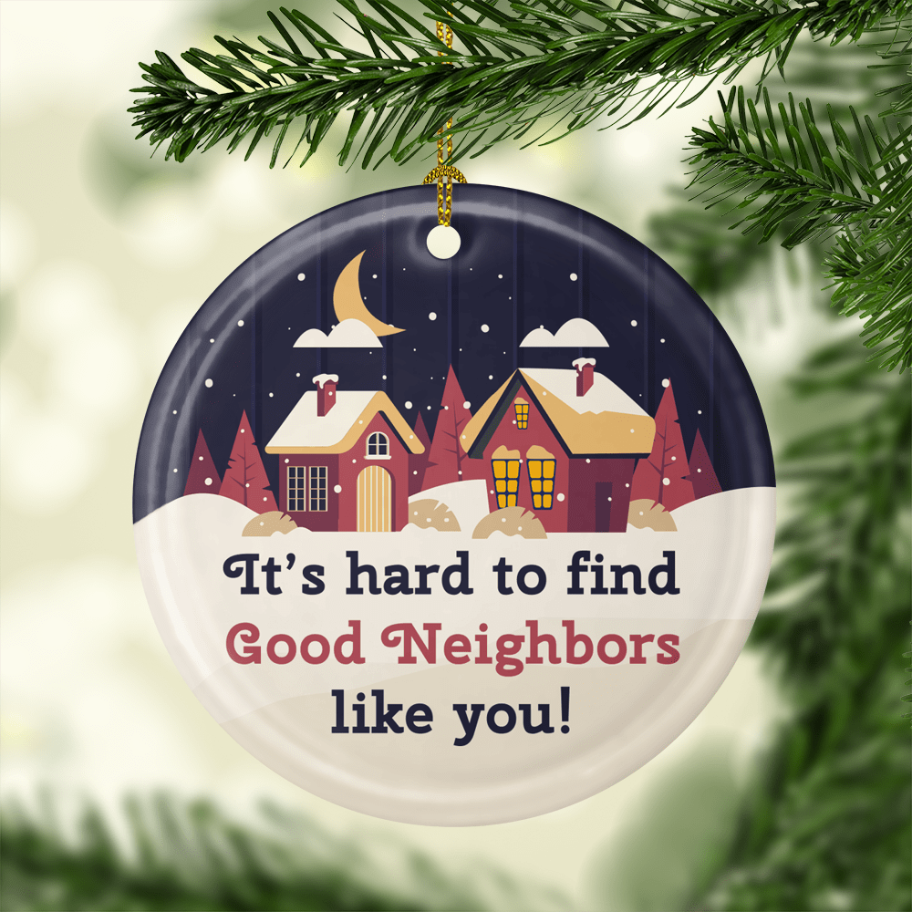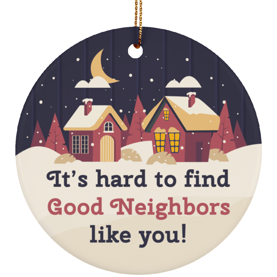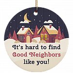 It's Hard to Find Good Neighbors Like You Christmas Ornament Keepsake - Circle Porcelain Ceramic Ornament