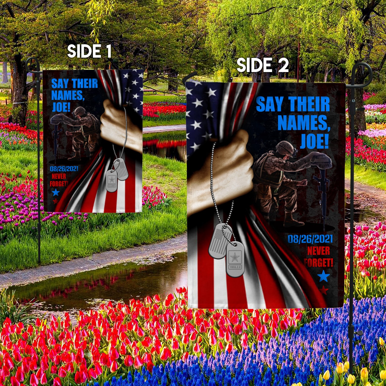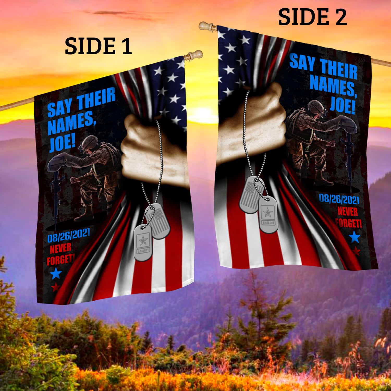 Are you spending too much time to find creative merchandise for you or suitable & special gifts for your mommy, your daddy, your son, your daughter, your children, your friends or someone you love? The struggle is over because we have various Say Their Names Joe Flag, Say Their Names Joe Never Forget 13 Heros Flag, Never Forget 13 Fallen Soldiers Garden Flag, 13 Soldiers Never Forget Kabul Afghanistan Flag, which will make perfect presents for your beloveds. In order to make your present stand out, we have created lots of unique and awesome customized photo gifts & personalized designs.