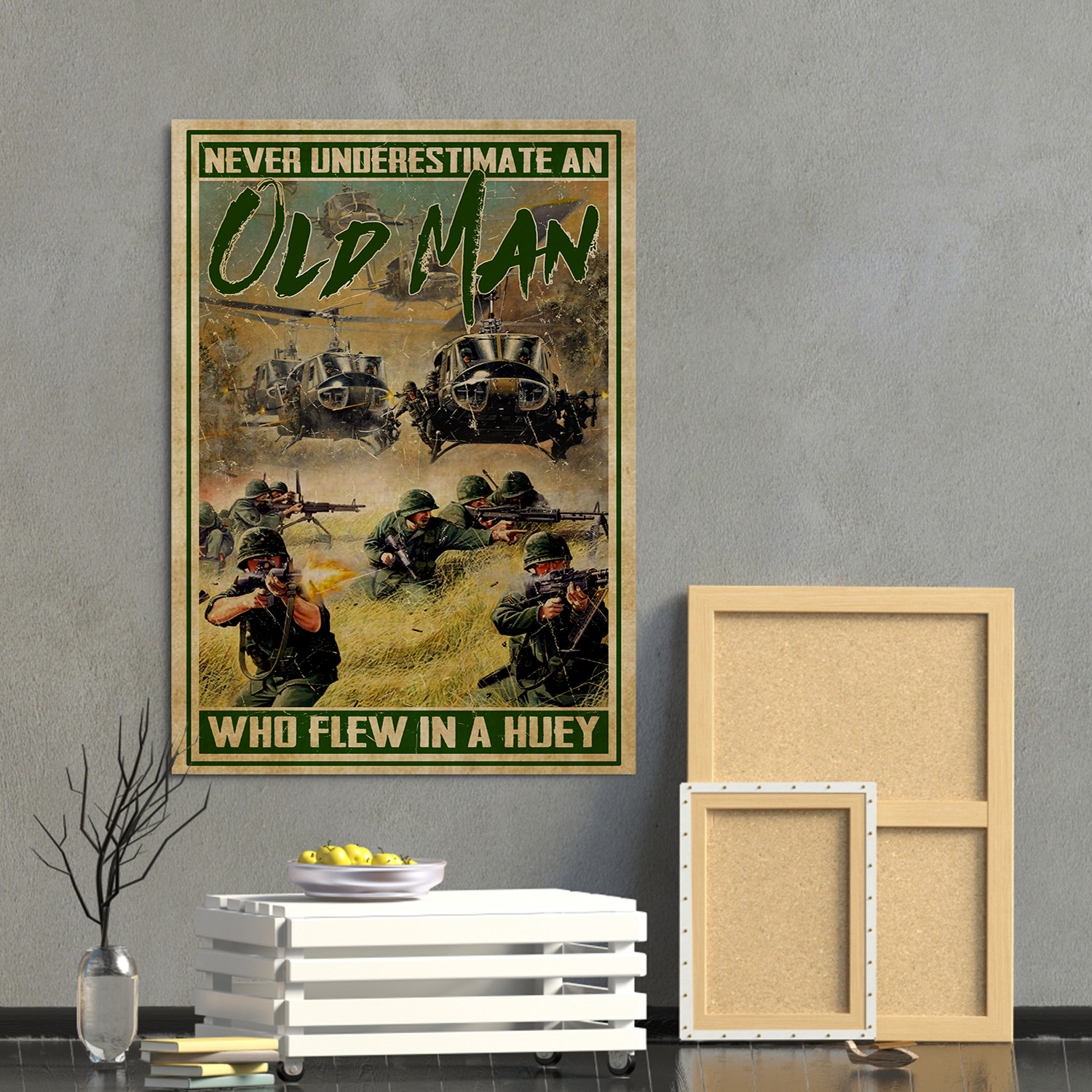 Let’s Shop Never Underestimate An Old Man Who Flew In A Huey Vietnam Veteran Wrapped Framed Canvas – Unframed Poster!