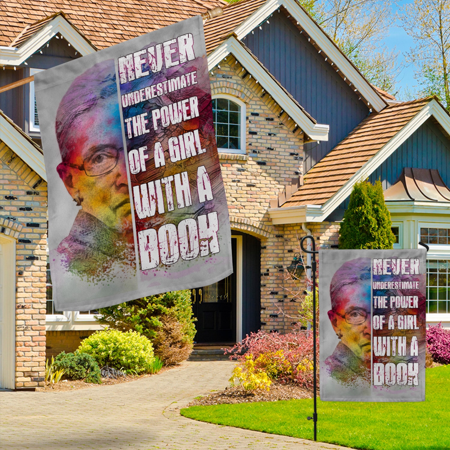 Let’s Shop Never Underestimate The Power Of A Girl With A Book Ruth Bader Ginsburg Outdoor House Flag – Home Garden Flag!