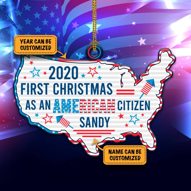 Let’s Shop Personalized First Christmas As An American Citizen America Custom Shaped Wooden Christmas Ornament!