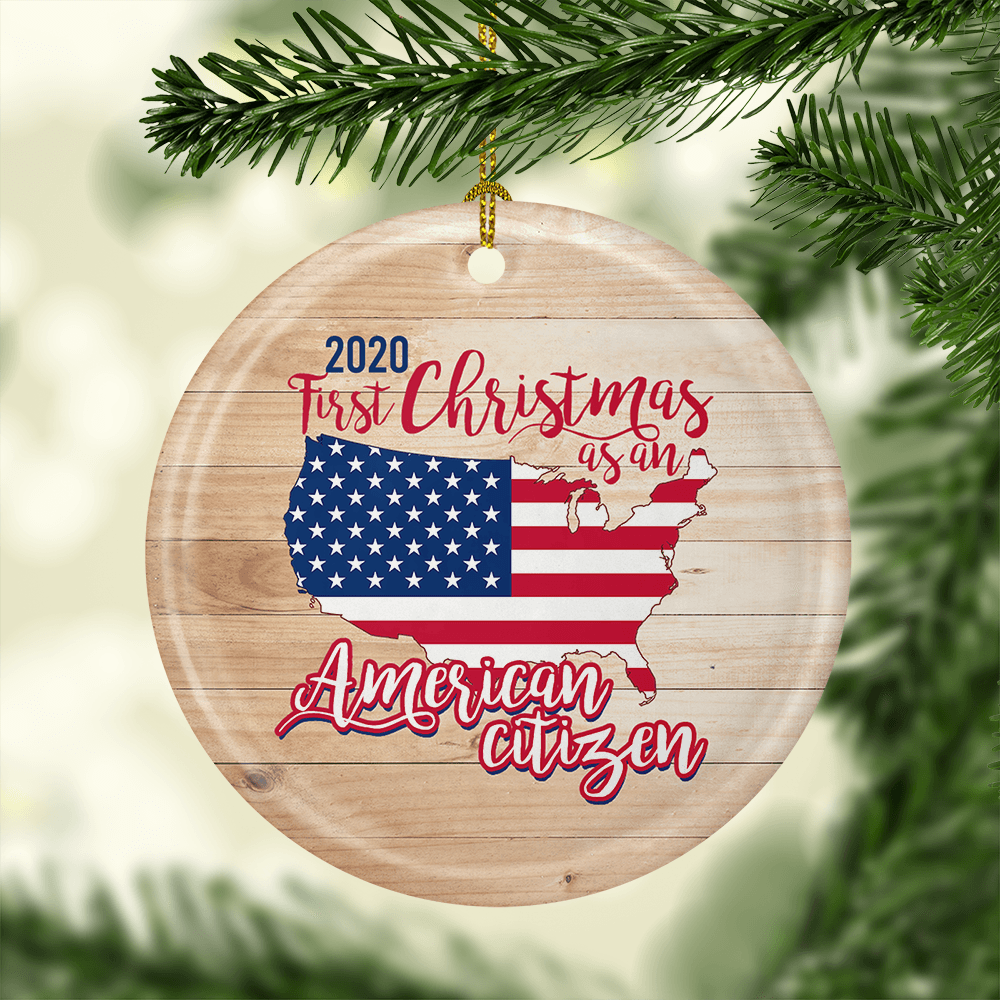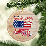 Shop Personalized First Christmas As An American Citizen Ornament Keepsake-Custom Holiday Circle Porcelain Ceramic.