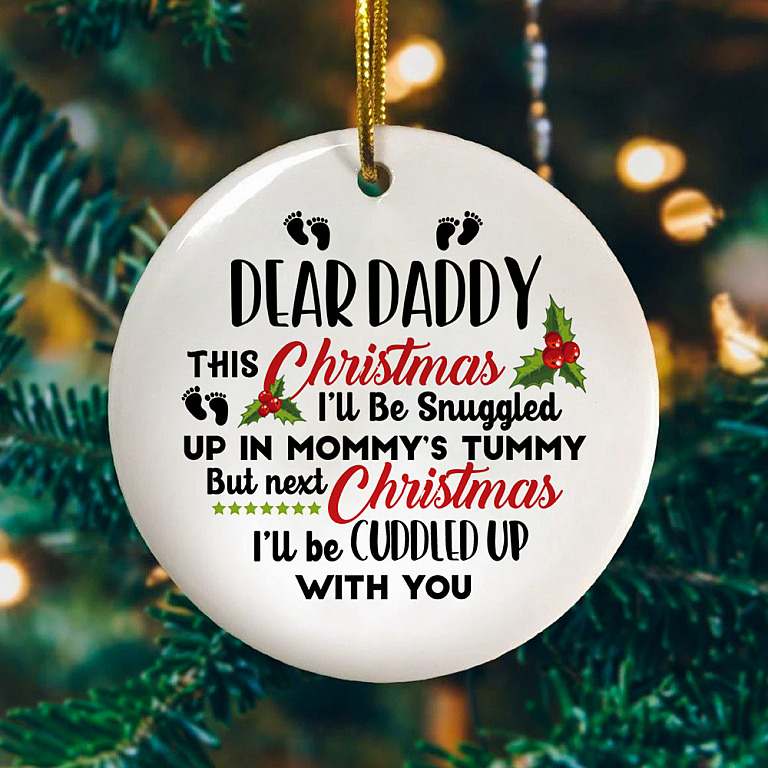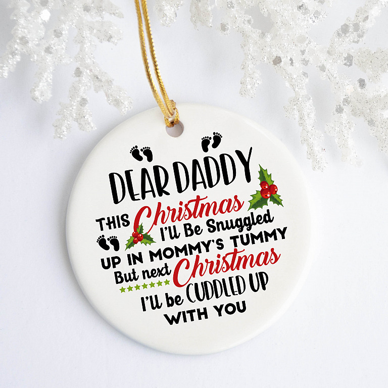 Let’s Shop Daddy This Christmas I’ll Be Snuggled Up In Mommy’s Tummy But Next Christmas Circle Ornament – Gifts for New Dad!
